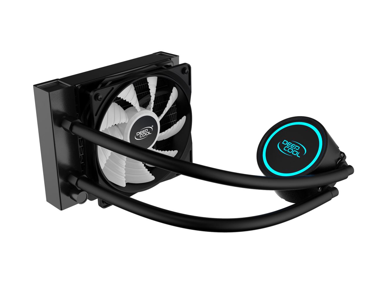Cooler procesor cu lichid Deepcool Gammaxx L120 iluminare albastra, sistem pre-umplut cu lichid cu sistem Anti-leak Tech, lungime furtun: 315mm, ventilator 120mm Hydro Bearing iluminare albastra (500-1800 RPM±10%, 69.34 CFM, ≤30 dB(A), 2.42 mmH2O, PWM), pompa silentioasa (2400±10% RPM) cu iluminare albastra, dimensiuni radiator: 159x120x27mm, compatibilitate: AMD AM4/AM3+/AM3/AM2+/AM2/FM2+/FM2/FM1 / Intel LGA20XX/LGA1366/LGA115X