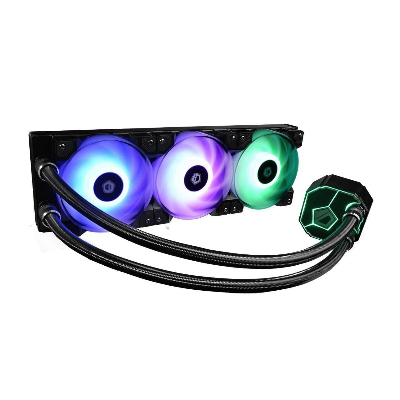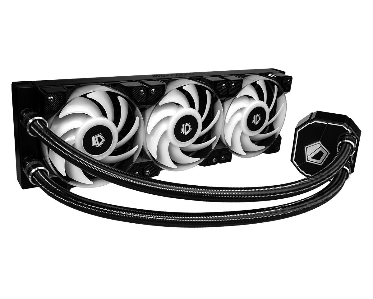 ID-Cooling Dashflow 360 RGB, sistem pre-umplut cu lichid, putere de racire de pana la 400W TDP, 3x 120mm 2Ball Bearing RGB fans (900-2000 RPM, 56.5 CFM, 16-31.5 dBA, 1.99 mmH2O, PWM), pompa RGB silentioasa (Ceramic Bearing, 2400 RPM, 25dBA), compatibil: Intel LGA2066/2011-3/2011/1366/1151/1150/1155/1156 si AMD AM4/FM2+/FM2/FM1/AM3+/AM3/AM2+/AM2, dimensiuni radiator: 396x120x27mm, lungime tub: 465mm