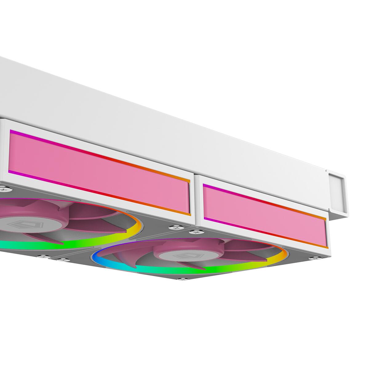 Cooler procesor cu lichid ID-Cooling FX240 Infinity Pink iluminare aRGB, sistem pre-umplut cu lichid, putere de racire de pana la 300W TDP, 2x 120mm AF-127-PINK Fluid Dynamic Bearing aRGB fan (500~2000±10%RPM, 78 CFM, 29.9 dBA, 2.68 mmH2O, PWM), pompa silentioasa aRGB (Ceramic Bearing, 2900 RPM, 25dBA)dimensiuni waterblock: 72x72x60mm, dimensiuni radiator: 276x120x27mm, lungime tub: 400mm, compatibil Intel LGALGA1851/1700/1200/115X / AMD AM4/AM5, compatibil cu Asus Aura Sync / Gigabyte RGB Fusion / ASRock Polychrome Sync / MSI Mystic Light