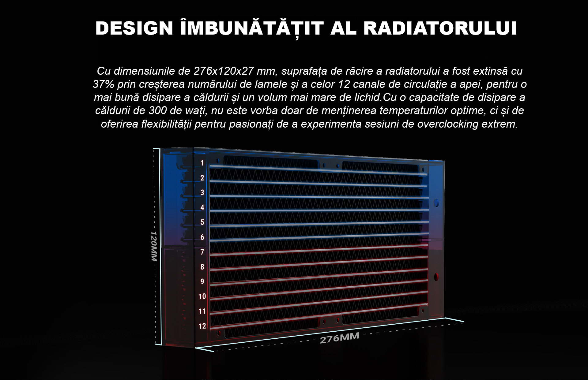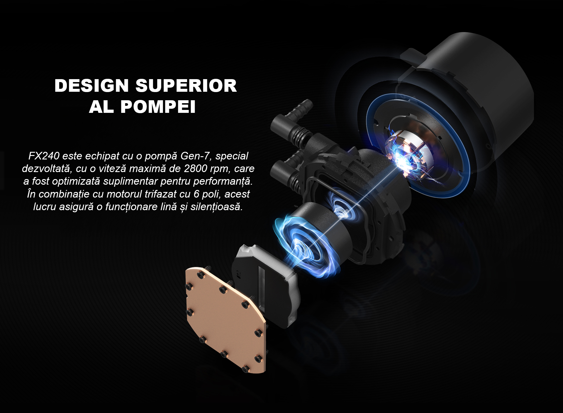Cooler procesor cu lichid ID-Cooling FX240 Pro negru, sistem pre-umplut cu lichid, putere de racire de pana la 300W TDP, 2x 120mm Hydraulic Bearing fan (500~1800±10%RPM, 82.5 CFM, 35.2 dBA, 2.55 mmH2O, PWM), pompa silentioasa (Ceramic Bearing, 2800 RPM, 25dBA, 116L/h), dimensiuni waterblock: 72x72x50mm, dimensiuni radiator: 276x120x27mm, lungime tub: 400mm, compatibil Intel LGA2066/2011/1851/1700/1200/115X / AMD AM4/AM5