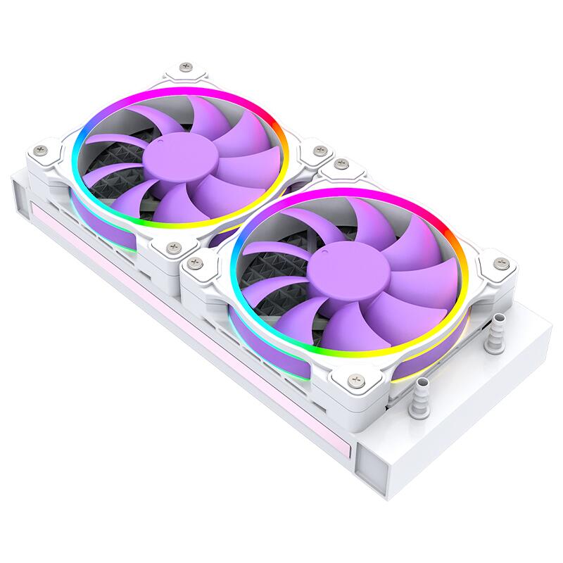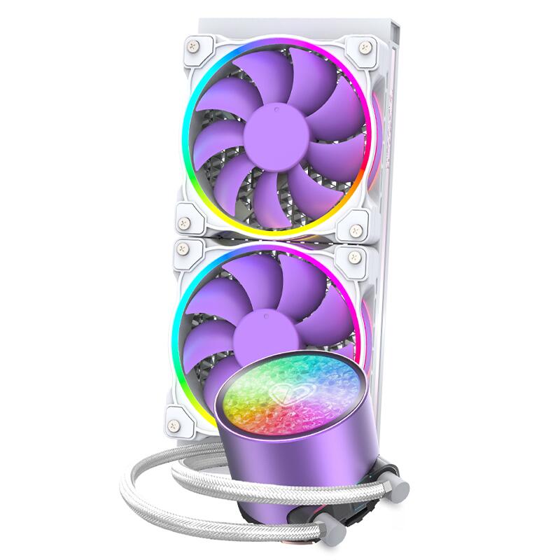Cooler procesor cu lichid ID-Cooling Pinkflow 240 Diamond Purple iluminare aRGB, sistem pre-umplut cu lichid, putere de racire de pana la 250W TDP, 2x 120mm Hydraulic Bearing aRGB fans (900~2000±10%RPM, 55.2 CFM, 16.3-33.5 dBA, 2.13 mmH2O, PWM), pompa aRGB silentioasa (Ceramic Bearing, 2100 RPM, 25dBA), compatibil: Intel LGA2066/2011/1700/1200/1151/1150/1155/1156 si AMD AM5/AM4, dimensiuni radiator: 274x120x27mm, lungime tub: 400mm, compatibil cu Asus Aura Sync si MSI Mystic Light