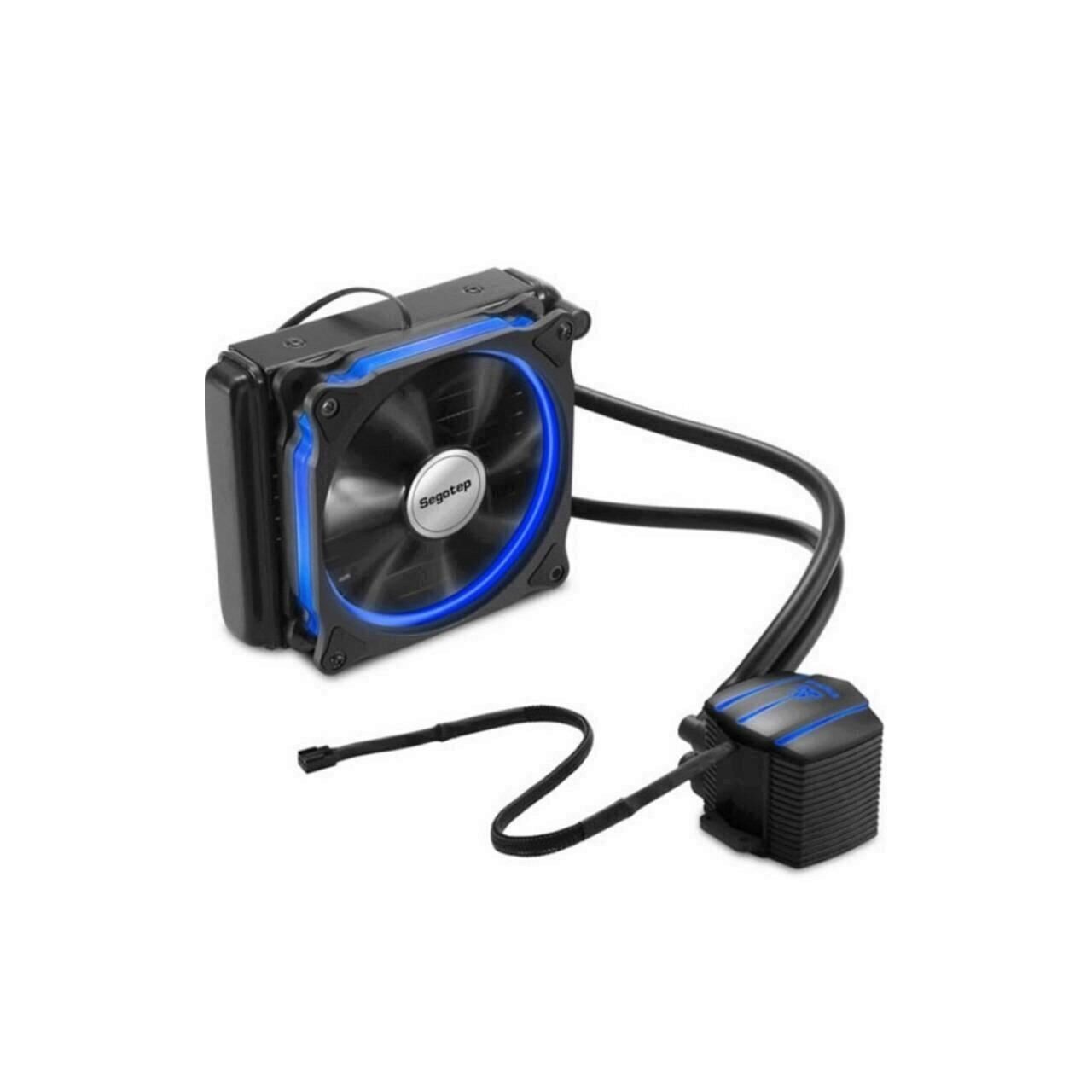 Segotep Water Cooler Halo 120 Blue, sistem pre-umplut cu lichid, valva de completare sau schimbare a lichidului, ventilator Ring LED Blue 120mm Hydraulic Mute Bearing (800-1600 RPM, 48.5 CFM, <30.5 dBA, 1.26 mmH2O, PWM), pompa silentioasa (2800±10% RPM, <25dBA), dimensiuni radiator: 154x120x25mm, compatibilitate: AMD AM2, AM2+, AM3, AM3+, AM4, FM1, FM2, FM2+ / Intel LGA1150, LGA1151, LGA1155, LGA1156, LGA1366, LGA2011, LGA2011-V3
