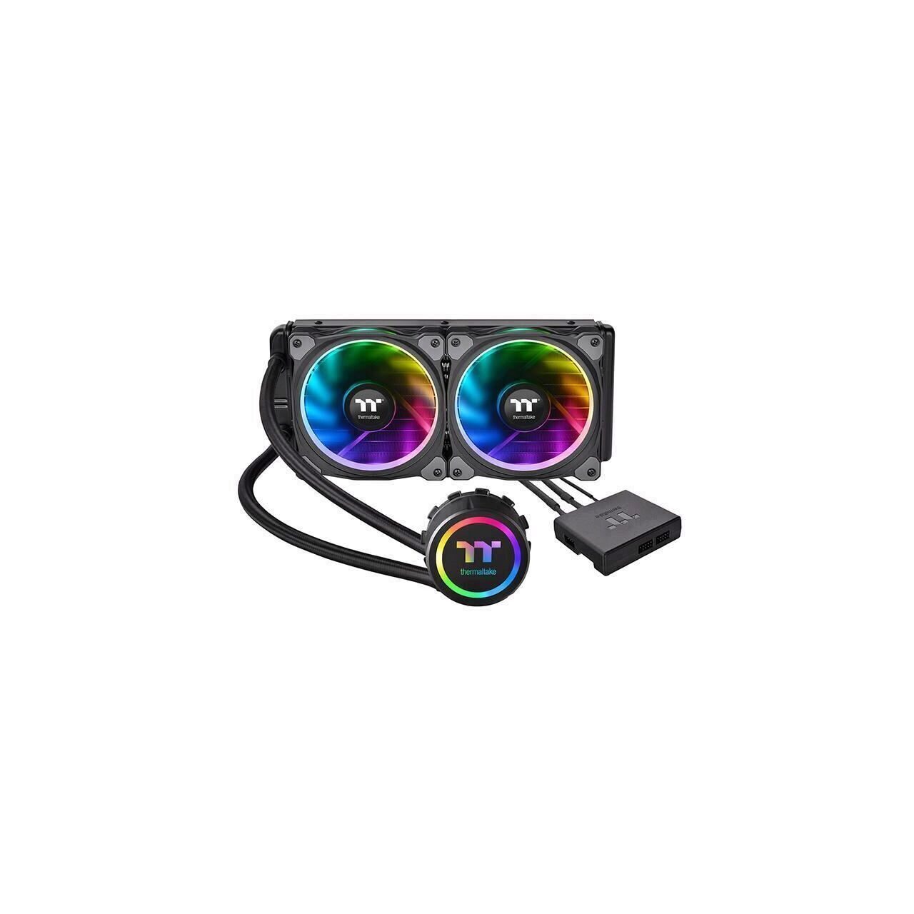 Cooler procesor cu lichid Thermaltake Floe Riing RGB 240 Premium Edition iluminare RGB, sistem pre-umplut cu lichid, 2 ventilatoare Riing Plus RGB 120mm (iluminare LED RGB, include controller pentru iluminarea LED, 500-1400 RPM in Low Noise Mode, 22.14-40.6 CFM, 19.8-24.7 dBA, 0.17-1.54 mmH2O, PWM), viteza pompa: 3600 R.P.M, dimensiuni radiator: 270 x 120 x 27 mm, lungime tub: 326mm, compatibilitate: AMD TR4/AM4/FM2/FM1/AM3+/AM3/AM2+/AM2 / Intel LGA 2066/2011-3/2011/1366/1156/1155/1151/1150, greutate: 1355g
