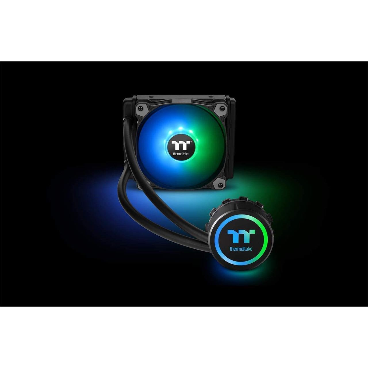 Cooler procesor cu lichid Thermaltake TH120 ARG, CPU ventilatoar aRGB 120mm (iluminare RGB adresabila in 16.8 milioane de culori, include controller pentru iluminarea LED, 1500 RPM, 59.28 CFM, 28.8 dBA), pompa silentioasa (3300 RPM), dimensiuni radiator: 153x 120 x 27 mm, lungime tub: 400mm, sincronizare aRGB cu placi compatibile AMD FM2/FM1/AM4/AM3+/AM3/AM2+/AM2 / Intel LGA 1156/1155/1151/1150, greutate: 955g