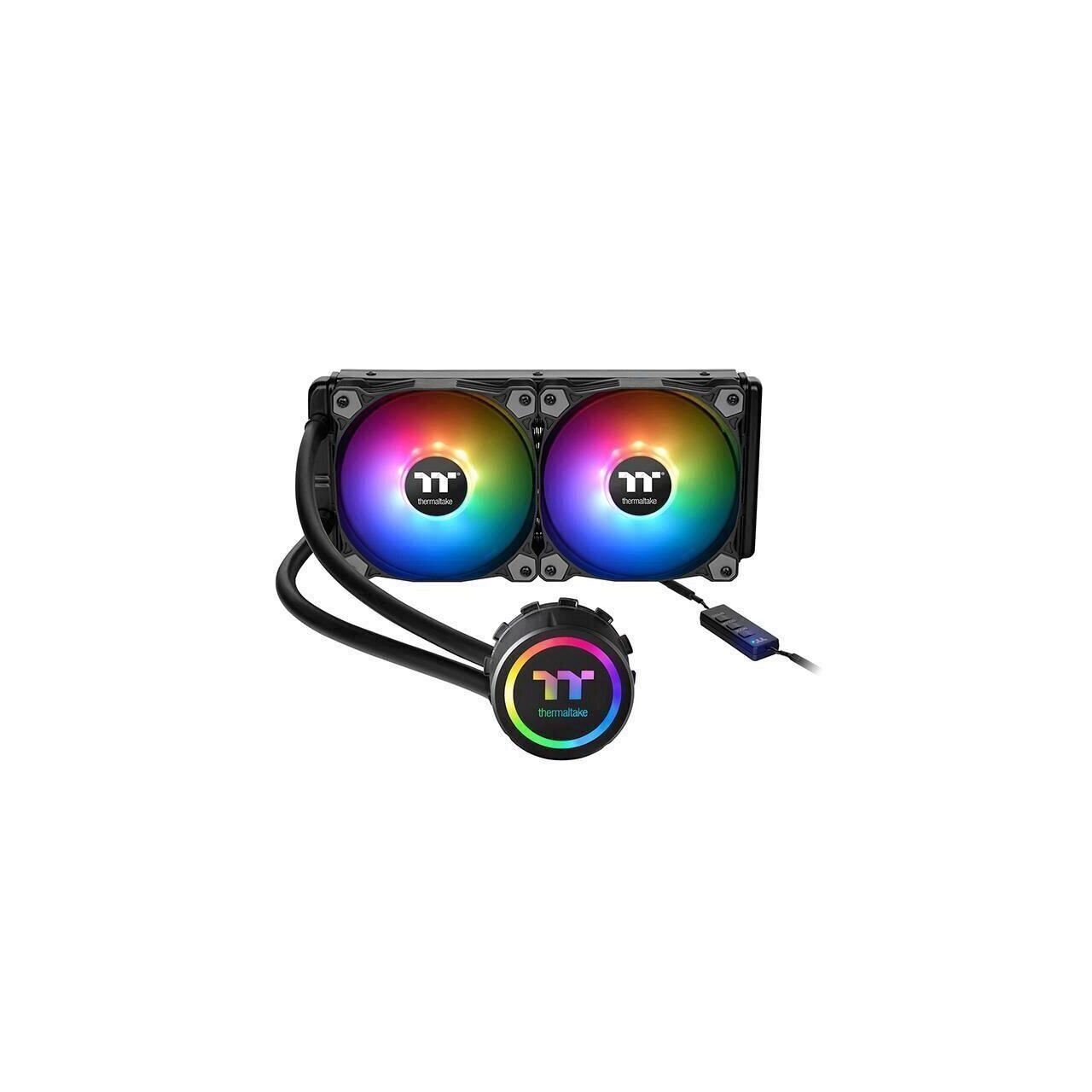 Cooler procesor cu lichid Thermaltake Water 240 3.0 iluminare aRGB, sistem pre-umplut cu lichid, 2 ventilatoare Pure 12 aRGB 120mm (iluminare RGB adresabila in 16.8 milioane de culori, include controller pentru iluminarea LED, PWM 500~1500 RPM, 56.45 CFM, 25.8 dBA, 1.59 mmH2O), pompa silentioasa (3000 RPM), dimensiuni radiator: 270 x 120 x 27 mm, lungime tub: 326mm, sincronizare aRGB cu placi compatibile de la Asus, Gigabyte, MSI si AsRock, compatibilitate: AMD FM2/FM1/AM4/AM3+/AM3/AM2+/AM2 / Intel LGA 2066/20113/2011/1366/1156/1155/1151/1150, greutate: 1230g