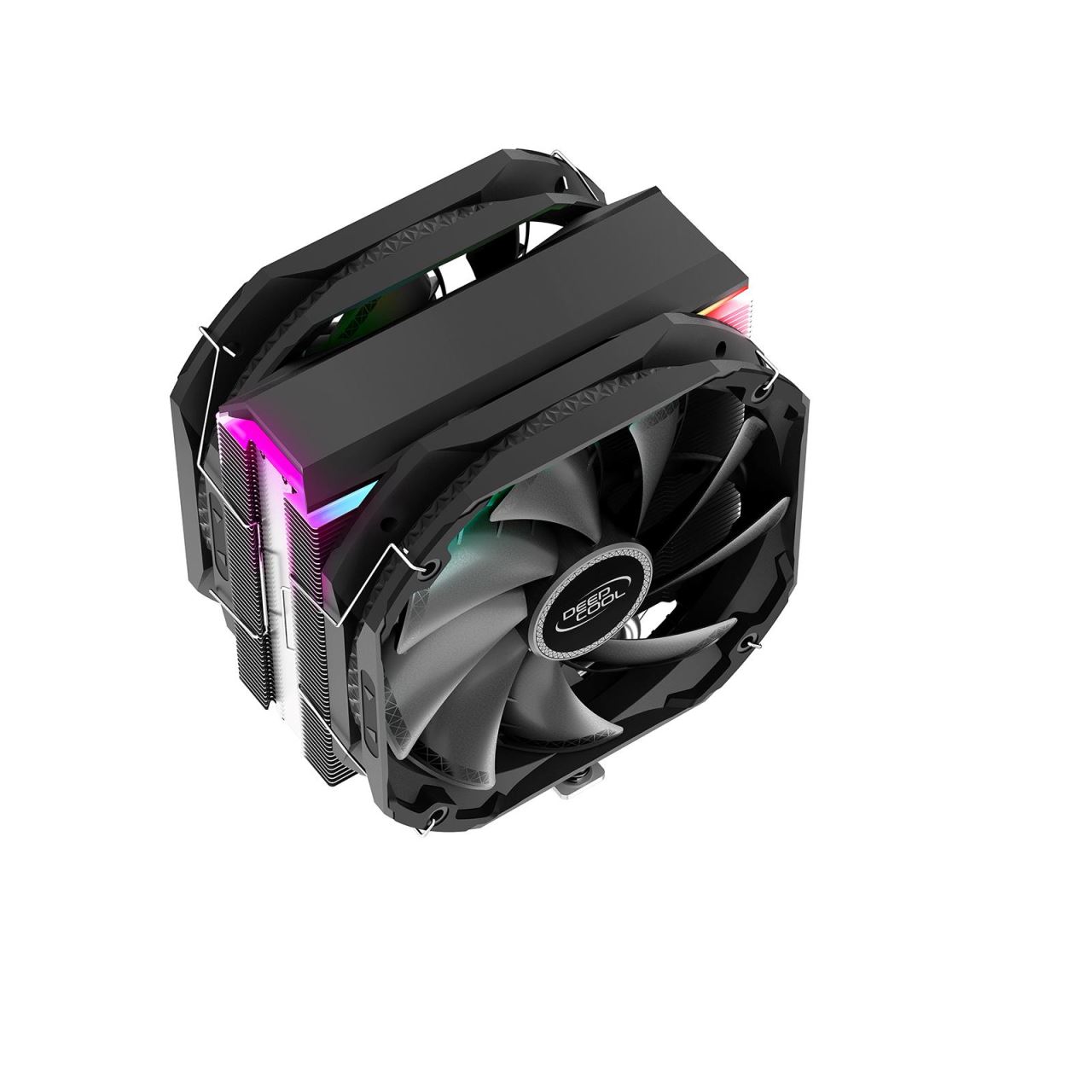 Cooler procesor Deepcool AS500 Plus iluminare RGB, 5 heatpipe-uri de 6mm, 2x 140mm Hydro Bearing fan push-pull (TF140S: 500~1200 RPM±10%, 70.81 CFM, ≤29.2dBA), iluminare aRGB compatibila cu header 3pin aRGB al placilor de baza, compatibil Intel LGA2066/2011-v3/2011/1200/115x / AMD AM4/AM3+/AM3/AM2+/AM2/FM2+/FM2/FM1, dimensiuni: 142x102x164 mm, greutate: 1.2kg