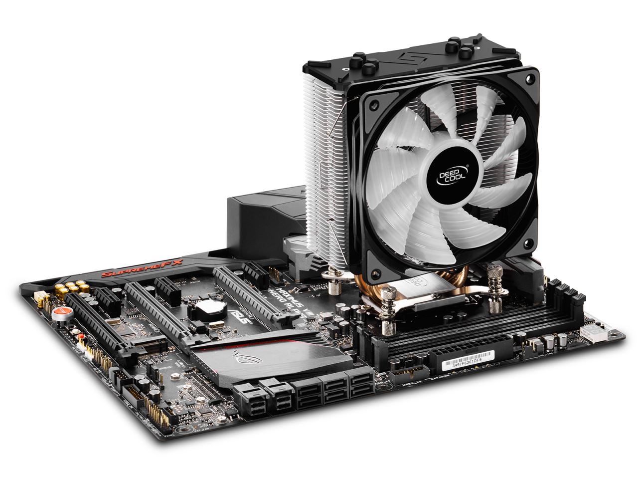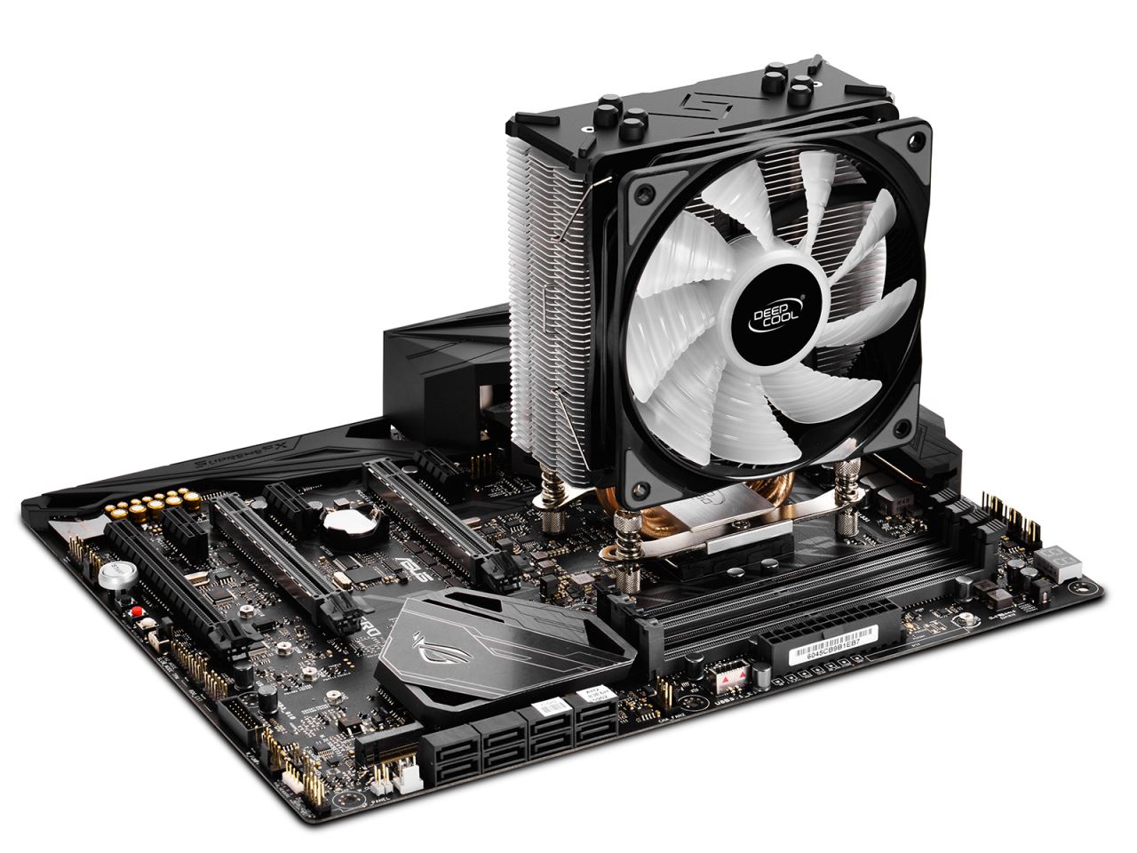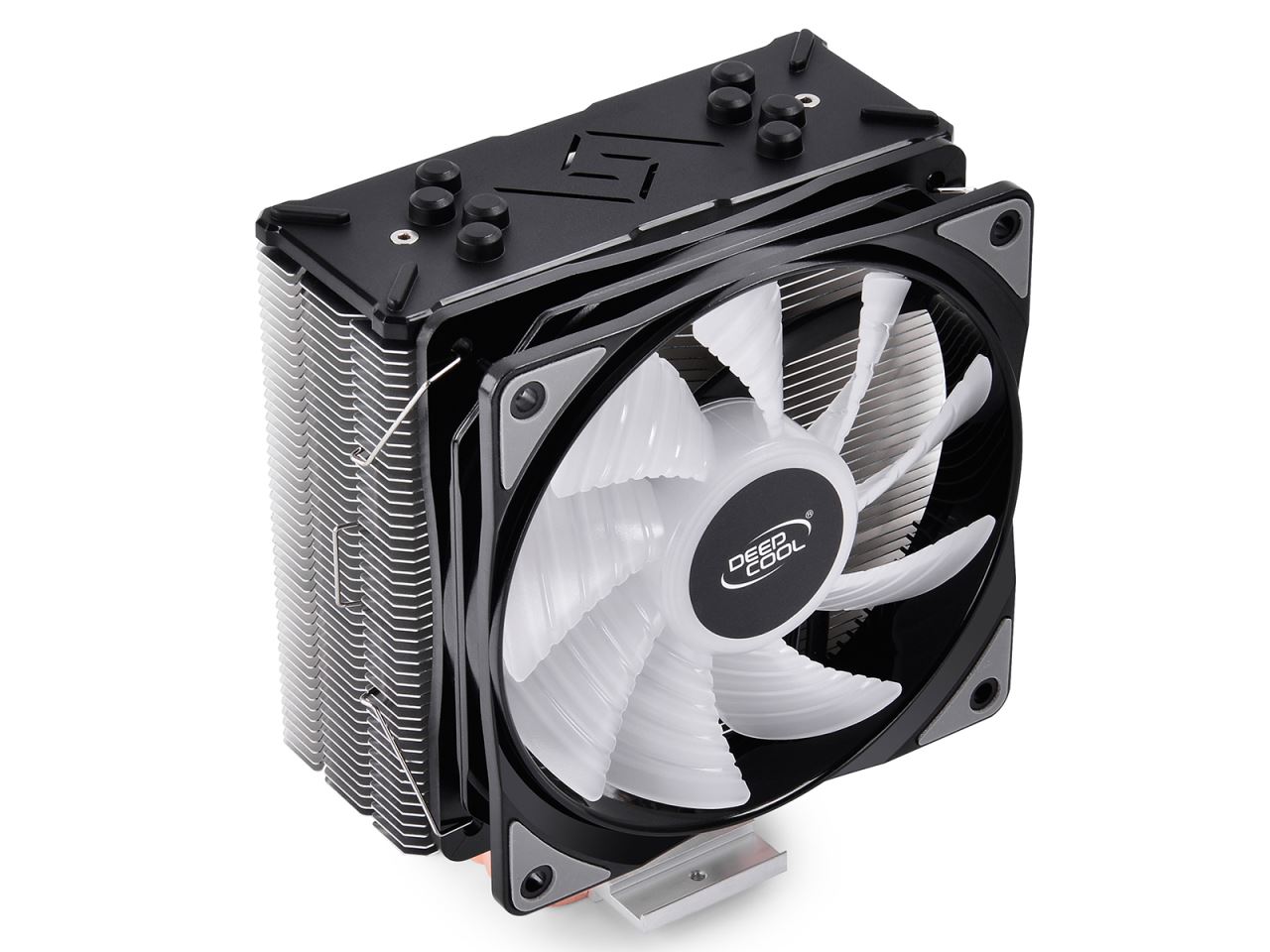 Deepcool Gammaxx GTE CPU Cooler, 4 heatpipe-uri direct touch de 6mm, 120mm Hydro Bearing RGB fan (500~1500 RPM±10%, 56.5 CFM, ≤27dBA), compatibil Intel LGA2066/2011-v3/2011/1151/1150/1155/LGA1366 / AMD AM4/AM3+/AM3/AM2+/AM2/FM2+/FM2/FM1, sincronizare RGB compatibila cu Asus Aura Sync, Gigabyte RGB Fusion, AsRock Polychrom si MSI Mystic Light Sync , dimensiuni: 135x84.8x157.4 mm, greutate: 748g