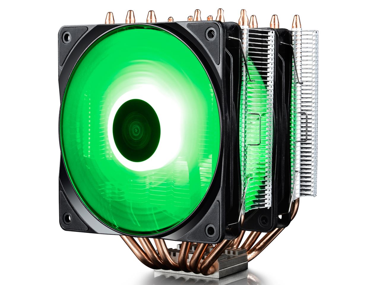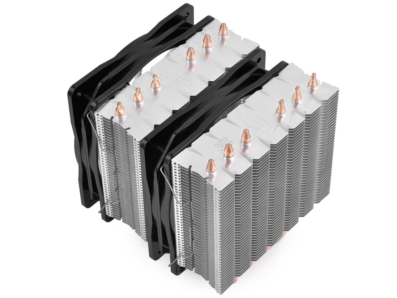 Deepcool Neptwin RGB, 6 heatpipe-uri de 6mm, 2x 120mm RGB Hydro Bearing fans (500~1500 RPM±10% RPM, 56.5 CFM, ≤27 dBA, cu PWM), compatibil Intel LGA2066/2011-v3/2011/1151/1150/1155/LGA775/LGA1366 / AMD AM4/AM3+/AM3/AM2+/AM2/FM2+/FM2/FM1, dimensiuni: 126x134x158 mm (cu ventilatoare), greutate: 1123g