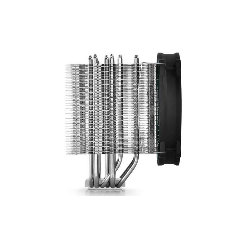 Gamer Storm Lucifer V2 (Silent Version), 6 heatpipe-uri de 6mm, 140mm Hydro Bearing fan (300-1400 RPM, 81.33 CFM, 12.6-31.1 dBA, PWM), compatibil Intel LGA775, LGA1150, LGA1155, LGA1156, LGA1366, LGA2011 / AMD AM2, AM2+, AM3, AM3+, FM1, FM2, dimensiuni generale: 140x136x168mm, dimensiuni radiator: 140x110x163mm, greutate (cu ventilator): 1079g, greutate ventilator: 143g