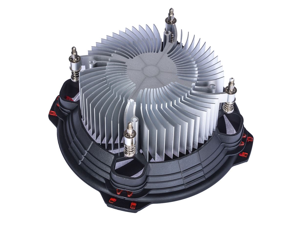 ID-Cooling DK-03 Halo Intel Red, putere de racire de pana la 100W TDP, 1x 120mm fan cu efect circular de iluminare LED rosu (1600 RPM, 58.4 CFM, 26.4 dBA, 1.58 mmH2O, 3pin), compatibil Intel LGA1150, LGA1151, LGA1155, LGA1156, dimensiuni (LxWxH): 130x130x63mm, greutate: 370g