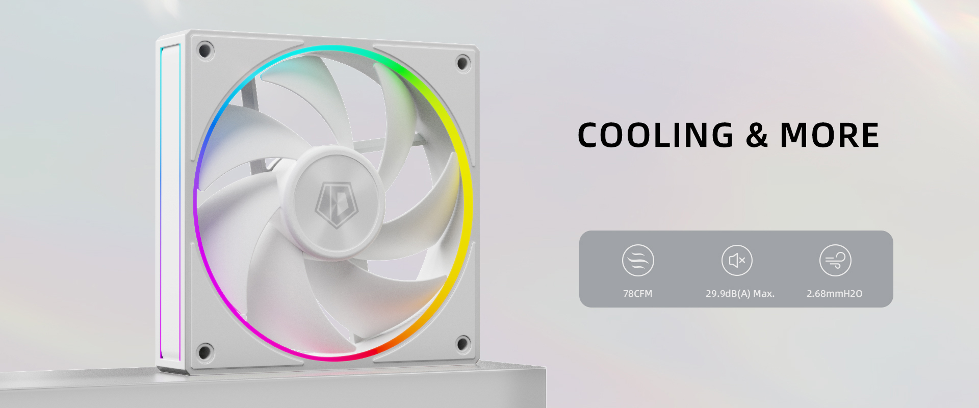 Design elegant si modern: Finisaj alb elegant cu un ventilator cu iluminare aRGB care se potriveste perfect in configuratii moderne.