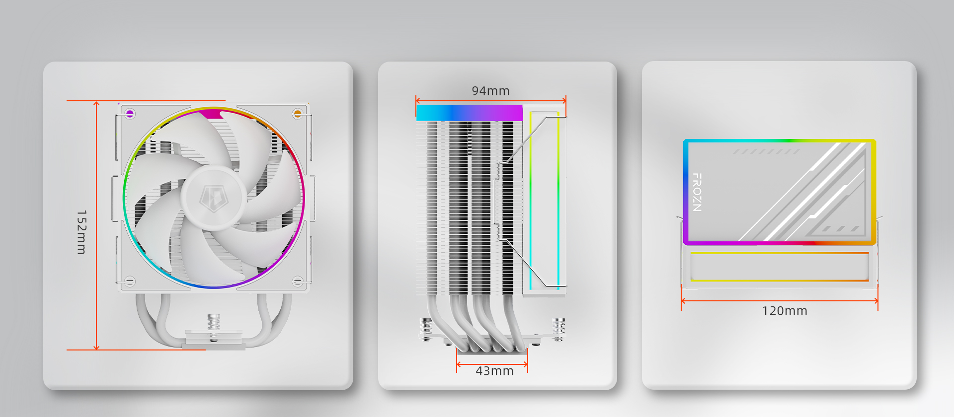 Coolerul procesor ID-Cooling FROZN A610 alb iluminare aRGB combina eficienta termica robusta cu o estetica eleganta si personalizabila. Cu sase heatpipe-uri din cupru de 6mm, un ventilator PWM de 120mm cu rulment fluid dinamic, iluminare aRGB sincronizabila si compatibilitate cu cele mai recente platforme, FROZN A610 alb iluminare aRGB este o alegere excelenta pentru cei care doresc un echilibru perfect intre performanta, stil si control.