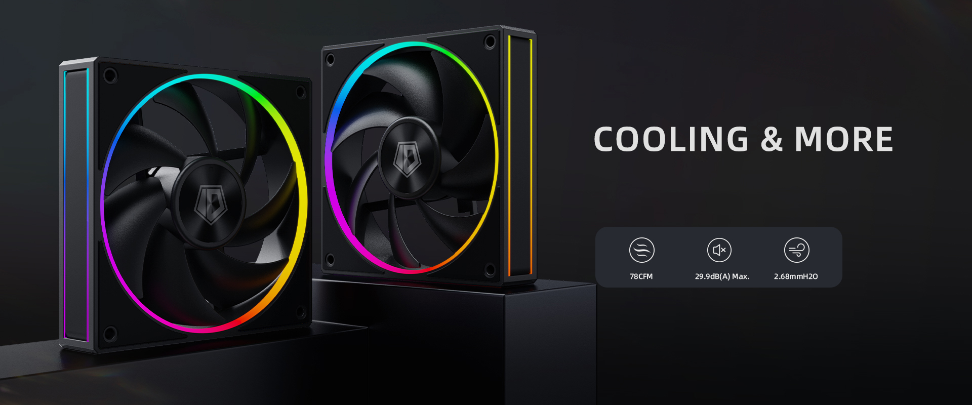 Ventilatoare silentioase si performante: Doua ventilatoare PWM de 120mm cu rulment fluid dinamic ofera un flux de aer puternic (78CFM) la un nivel de zgomot redus (29.9dB(A)).