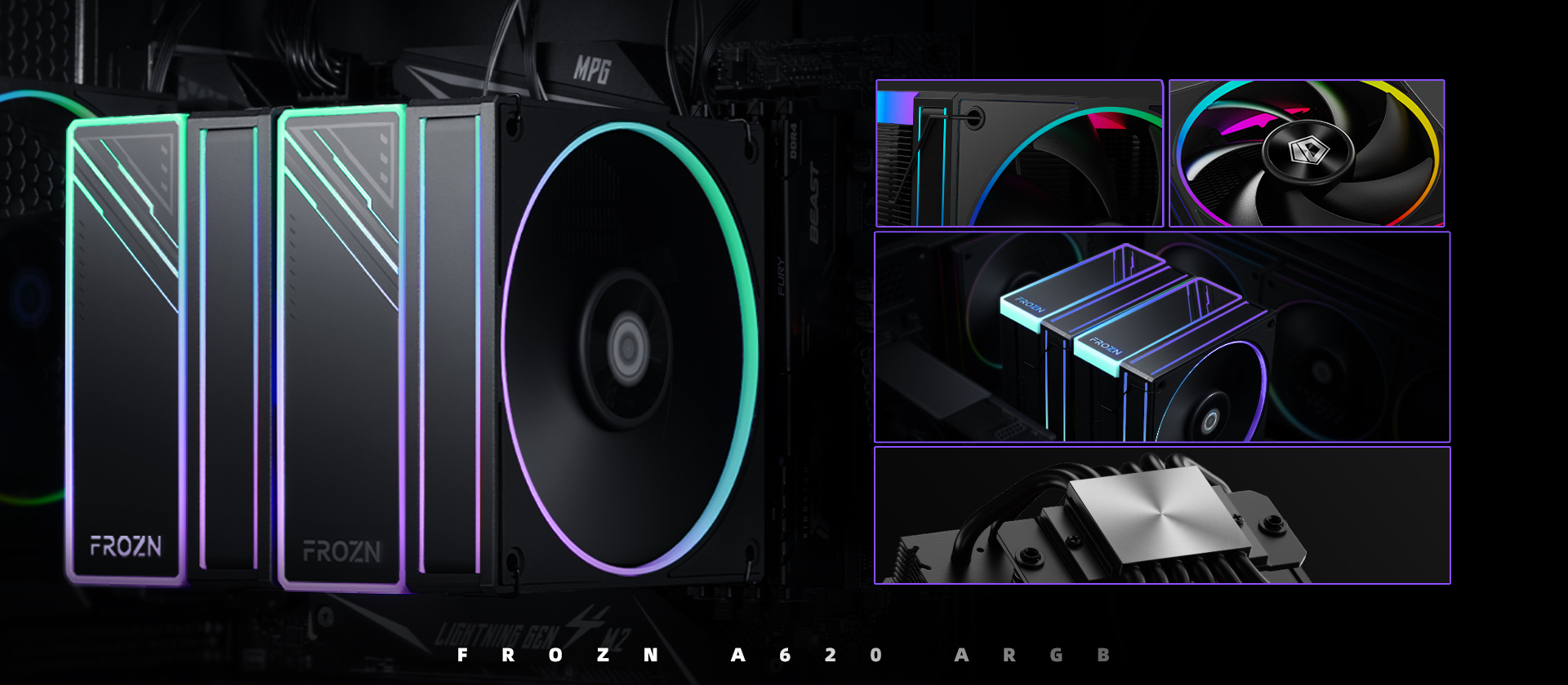 Coolerul procesor ID-Cooling FROZN A620 iluminare aRGB combina eficienta termica exceptionala cu o estetica vibranta si personalizabila. Cu un design dual tower robust, sase heatpipe-uri din cupru de 6mm, doua ventilatoare PWM de 120mm cu rulment fluid dinamic, iluminare aRGB sincronizabila si compatibilitate cu cele mai recente platforme, FROZN A620 iluminare aRGB este o alegere excelenta pentru cei care doresc o solutie de racire de top cu un control estetic complet.