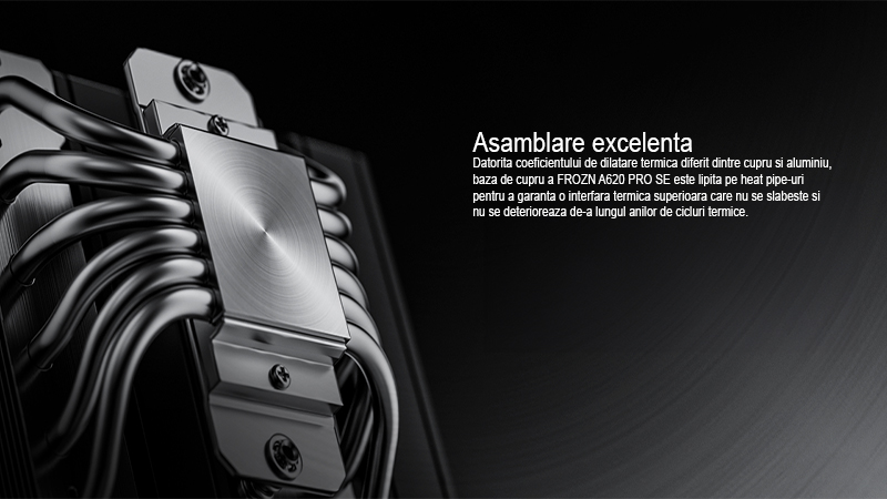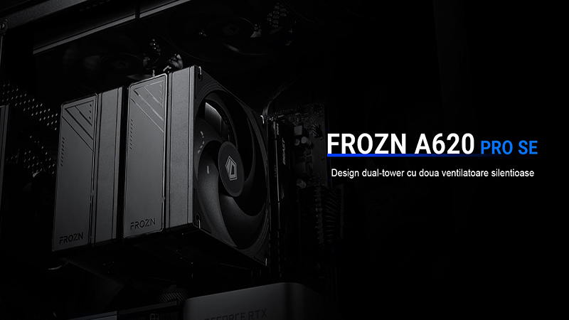 Cooler procesor ID-Cooling FROZN A620 Pro SE negru, 6 heatpipe-uri din cupru de 6mm, putere de racire de pana la 260W TDP, tip: dual tower, 2x 120mm Hydraulic Bearing fan (300-2000RPM, 58CFM, 1.94mmH2O, 27.2dB(A), PWM), compatibil Intel LGA1851/1700/1200/115x / AMD AM5/AM4, dimensiuni: 120x142x157mm, greutate: 1.19kg
