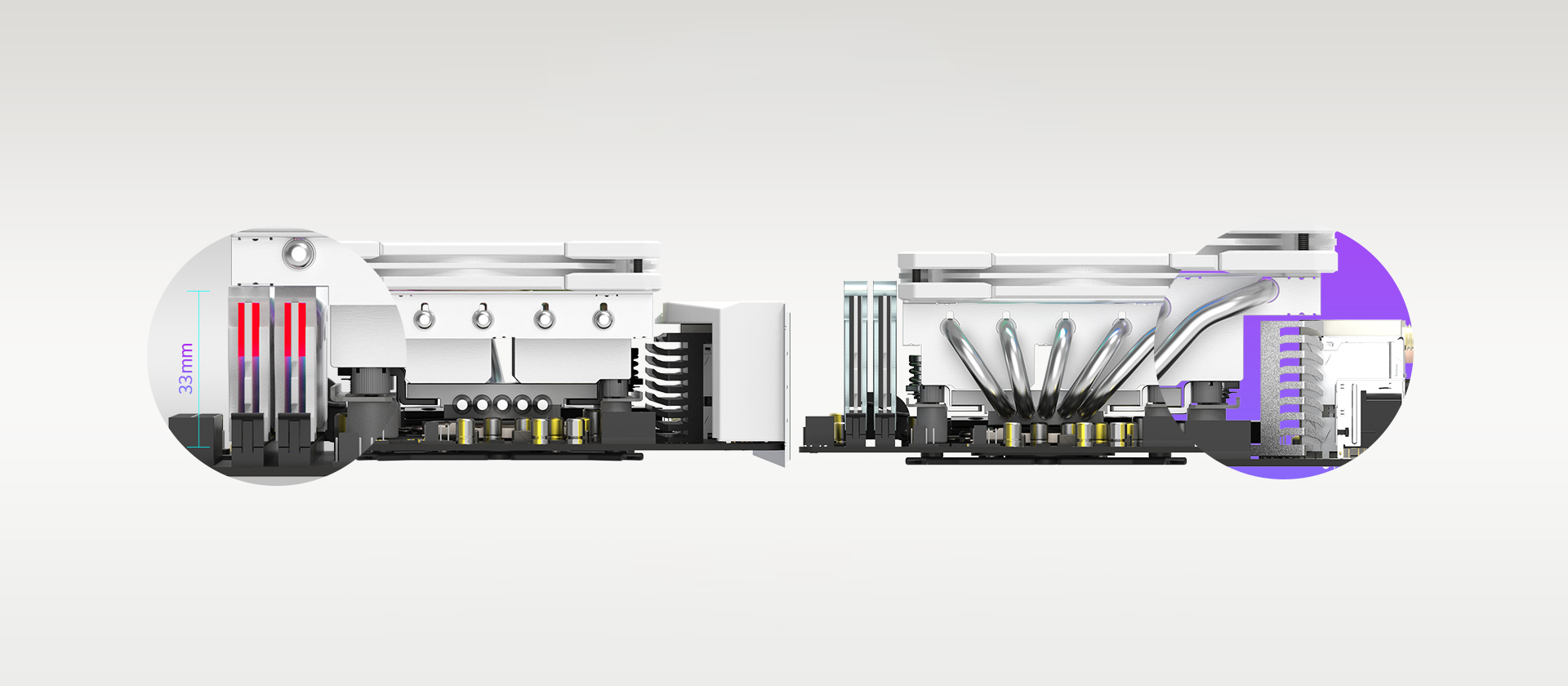 Radiatorul este un dispozitiv care transfera caldura de la heatpipe-uri la aer. Radiatorul coolerului ID-Cooling IS-55 alb iluminare aRGB este realizat din aluminiu, care este un material cu o conductivitate termica ridicata.