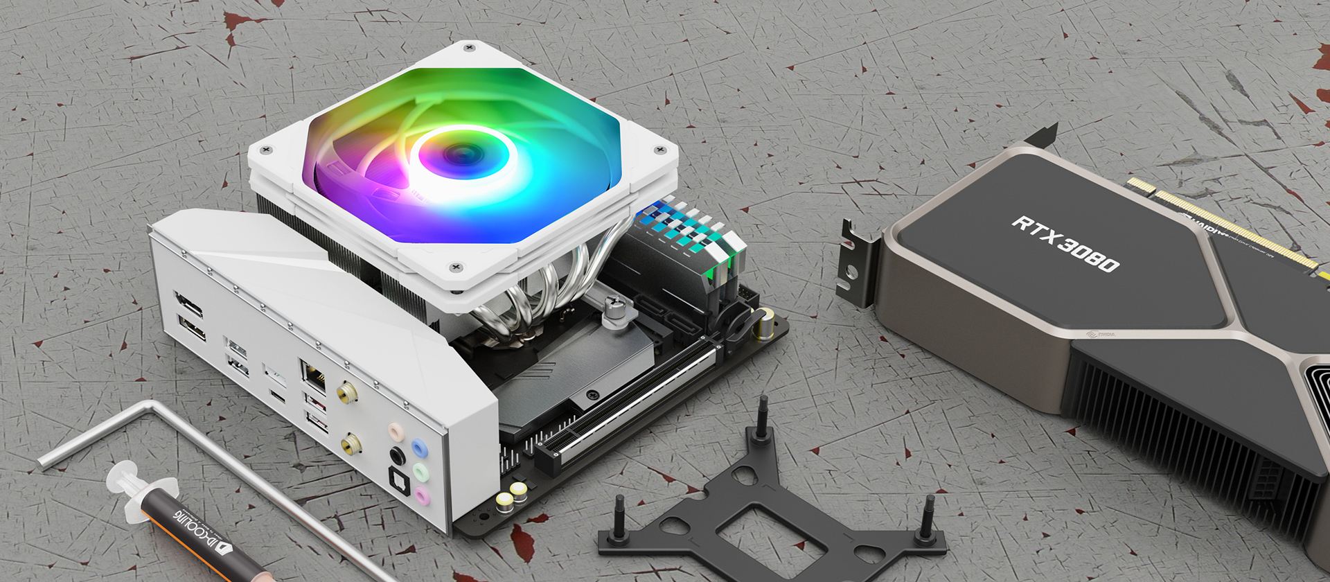 Coolerul ID-Cooling IS-55 alb iluminare aRGB are un design simplu si elegant.