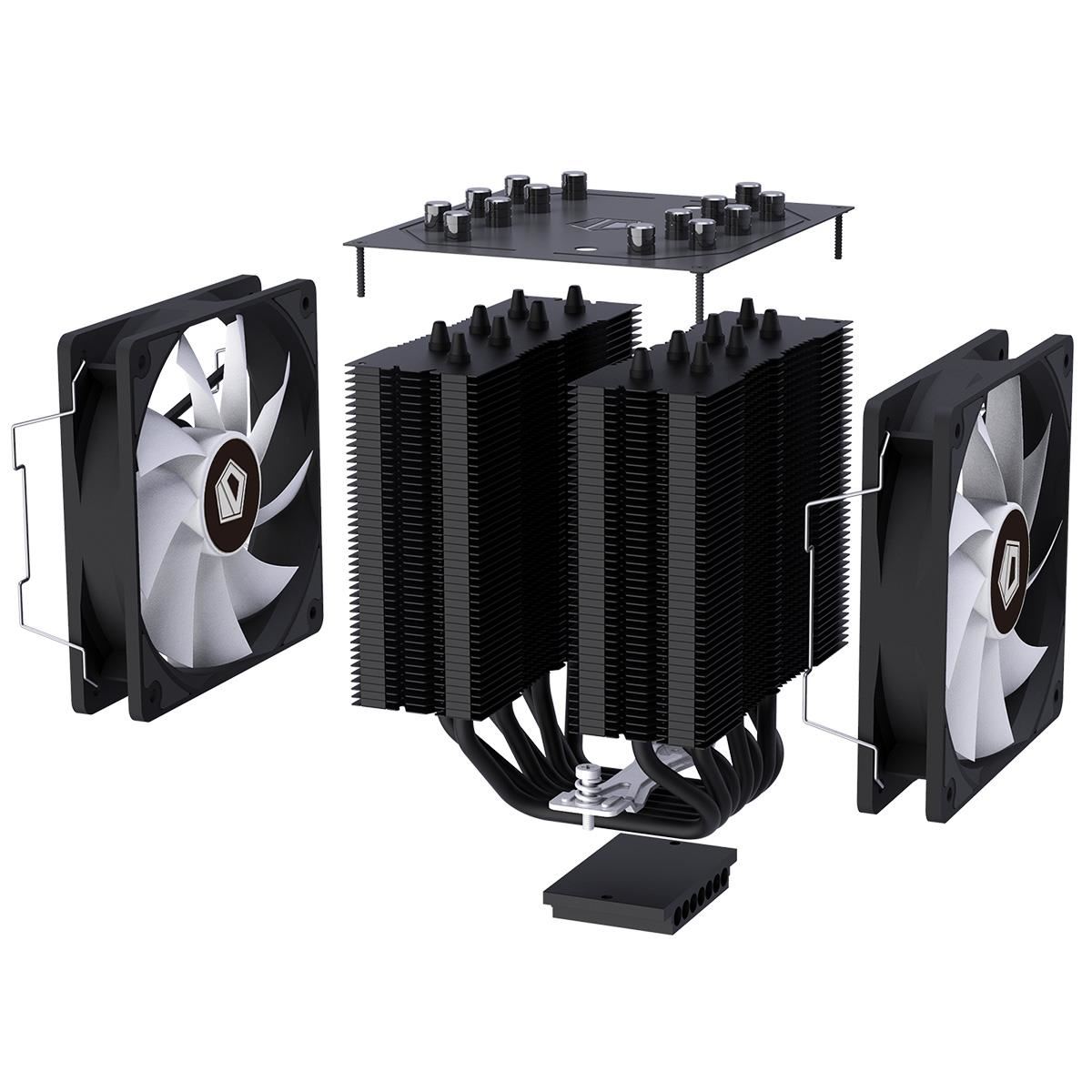 Cooler procesor ID-Cooling SE-207 negru, 7 heatpipe-uri din cupru de 6mm, putere de racire de pana la 250W TDP, 2x 120mm Hydraulic Bearing fan (Fan 1: 1300 RPM, 56.2 CFM, 1.62 mmH2O, 30.1 dBA, Fan 2: 700-1800 RPM PWM, 74.5 CFM, 2.15 mmH2O, 18-35.2 dBA, PWM), compatibil Intel LGA2066/2011/1200/1150/1151/1155/1156 / AMD AM4/FM2+/FM2/FM1/AM3+/AM3/AM2+/AM2, dimensiuni: 122x139x159mm, greutate: 950g(with fan)