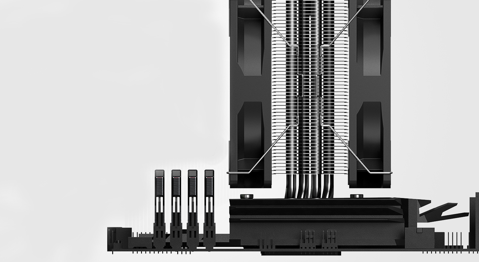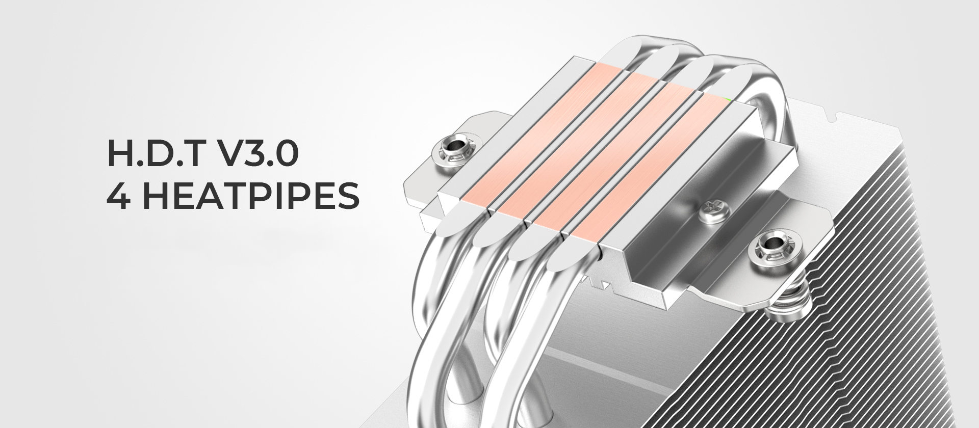 Performanta de racire exceptionala: Disipator de caldura cu patru heatpipe-uri din cupru de 6mm cu contact direct pentru un transfer termic superior si o putere de racire de pana la 200W TDP.