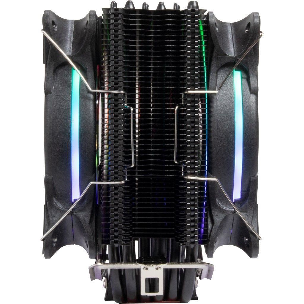 Cooler procesor Inter-Tech Argus SU-280, 6 heatpipe-uri direct touch de 6mm, putere de racire de pana la 180W TDP, 2x 120mm RGB LED fan (600-1200 RPM, 59.47 m³/h, max. 26 dBA, PWM), compatibil Intel LGA: 115x/1200/1366 / AMD: FM1/FM2/AM2/AM2+/AM3/AM3+/AM4, conectori: 4pin PWM si 3pin RGB, compatibil cu ASUS AURA Sync / Gigabyte RGB Fusion 2.0 / MSI Mystic Light Sync / ASRock Polychrome, dimensiuni: 160x130x100mm, greutate: 830g