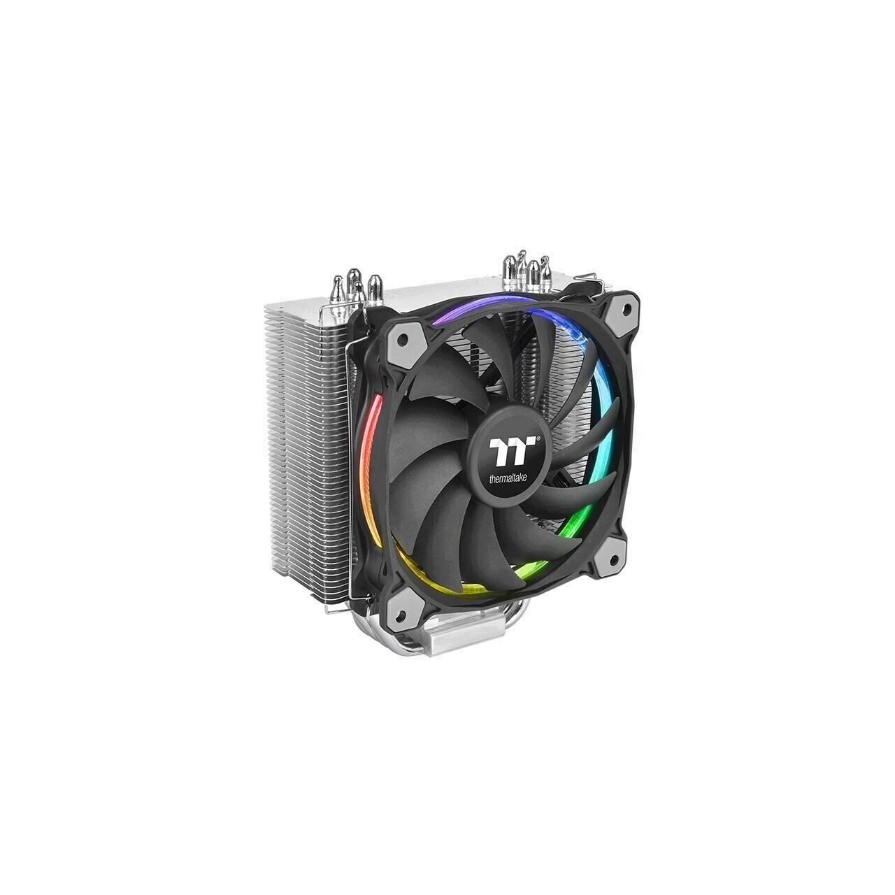 Cooler procesor Thermaltake Riing Silent 12 iluminare RGB, 4 heatpipe-uri de 6mm, putere de racire de pana la 150W TDP, 120mm Hydraulic Bearing fan (500-1500 RPM / 300-700 RPM folosind cablul Low Noise -LNC- inclus, 53 CFM, 22 dBA / 13 dBA cu LNC, 1.23 mm-H2O, 11 pale, PWM + LNC), compatibil Intel LGA 2066/2011-3/2011/1366/1156/1155/1151/1150/775 / AMD AM4/FM2/FM1/AM3+/AM3/AM2+/AM2, dimensiuni: 159x140x74 mm(L xW x H)