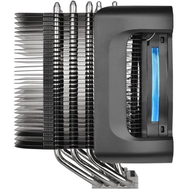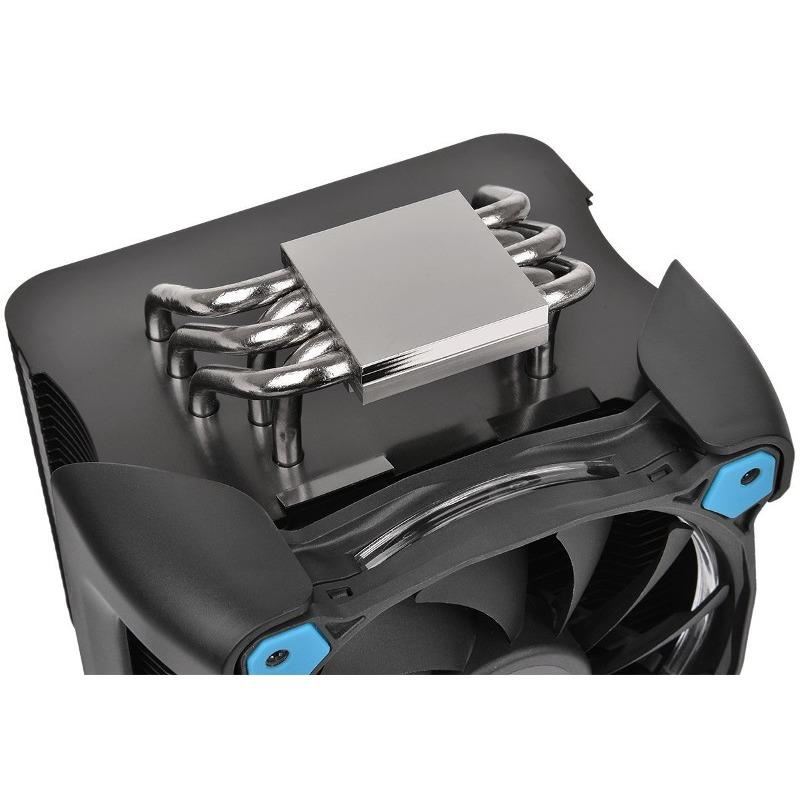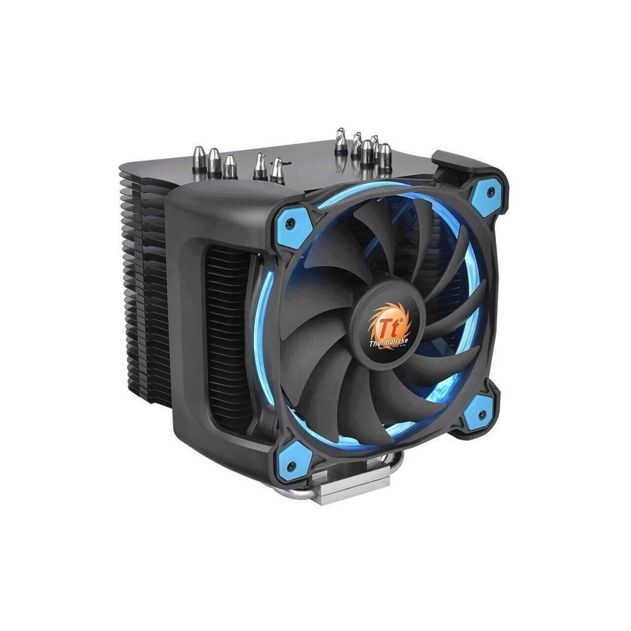 Thermaltake Riing Silent 12 Pro Blue, 5 heatpipe-uri de 6mm, putere de racire de pana la 170W TDP, 120mm Hydraulic Bearing fan (500-1400 RPM / 300-700 RPM folosind cablul Low Noise -LNC- inclus, 53 CFM, 19 dBA / 12 dBA cu LNC, 1.23 mm-H2O, 11 pale, PWM + LNC), compatibil Intel LGA775, LGA1150, LGA1151, LGA1155, LGA1156, LGA1366, LGA2011, LGA2011-3, LGA2066 / AMD AM2, AM2+, AM3, AM3+, FM1, FM2, AM4, dimensiuni: 140x102x160mm (L x W x H)