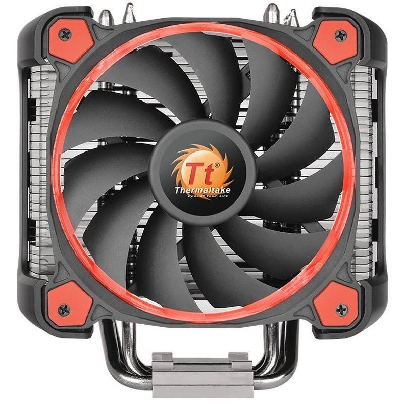 Thermaltake Riing Silent 12 Pro Red, 5 heatpipe-uri de 6mm, putere de racire de pana la 170W TDP, 120mm Hydraulic Bearing fan (500-1400 RPM / 300-700 RPM folosind cablul Low Noise -LNC- inclus, 53 CFM, 19 dBA / 12 dBA cu LNC, 1.23 mm-H2O, 11 pale, PWM + LNC), compatibil Intel LGA775, LGA1150, LGA1151, LGA1155, LGA1156, LGA1366, LGA2011, LGA2011-3, LGA2066 / AMD AM2, AM2+, AM3, AM3+, FM1, FM2, AM4, dimensiuni: 140x102x160mm (L x W x H)