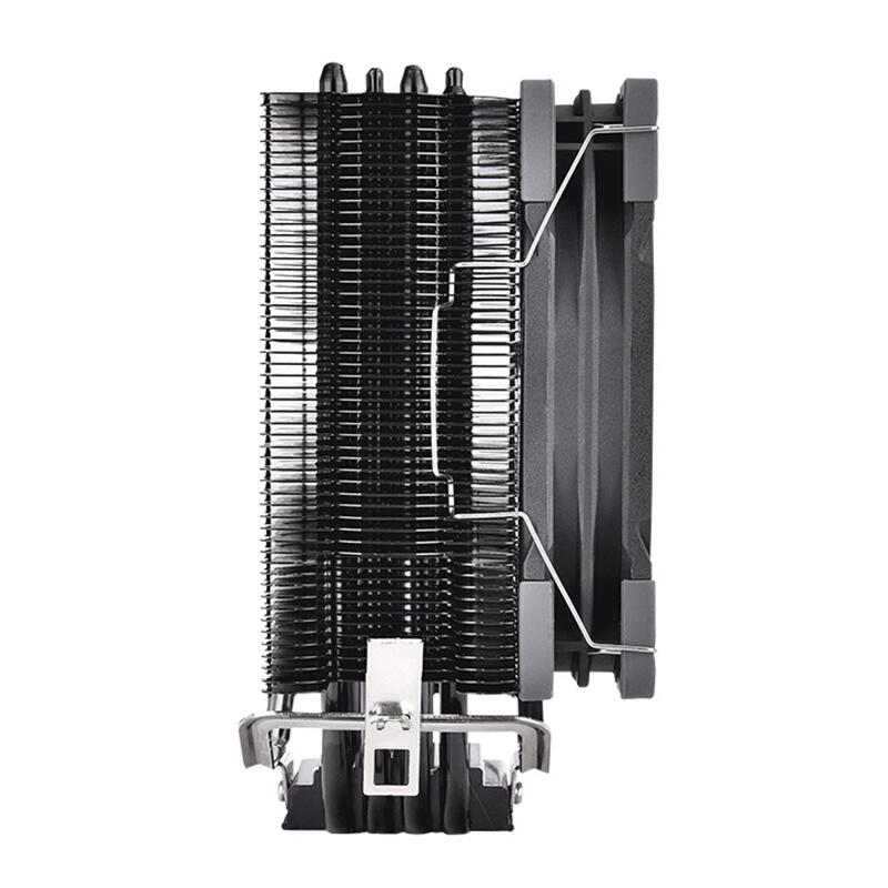 Ventilatorul de 120mm inclus in pachet este echipat cu rulment hidraulic, ceea ce asigura o functionare silentioasa si durabila. Acesta functioneaza la viteze variabile cuprinse intre 800 si 1800 RPM, oferind un flux de aer de pana la 62.72 CFM. Nivelul de zgomot este redus la doar 25 dBA, ceea ce face ca acest cooler sa fie potrivit pentru utilizatorii care doresc un sistem silentios. Presiunea statica de 1.47 mm-H2O contribuie la o racire eficienta, asigurand un flux de aer puternic si concentrat.