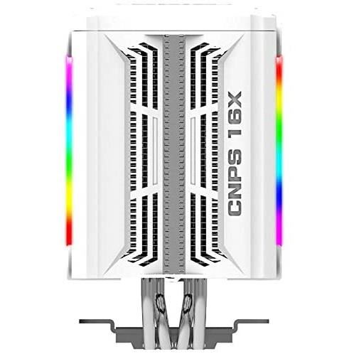 Cooler procesor Zalman CNPS16X alb iluminare RGB, 4 heatpipe-uri de 6mm, TPD: 150W, include pasta termica ZM-STC8 de inalta performanta, 2 ventilatoare de 120mm EBR Bearing aRGB fan (800-1500 RPM, 27 dBA, 49 CFM, 1.21mmH₂O, PWM), compatibil cu placile de baza cu header aRGB 3pin, compatibil Intel LGA2066/2011-V3/2011/115X/LGA1200 / AMD AM4/AM3+/AM3, dimensiuni: 140x100x165mm, greutate: 880g