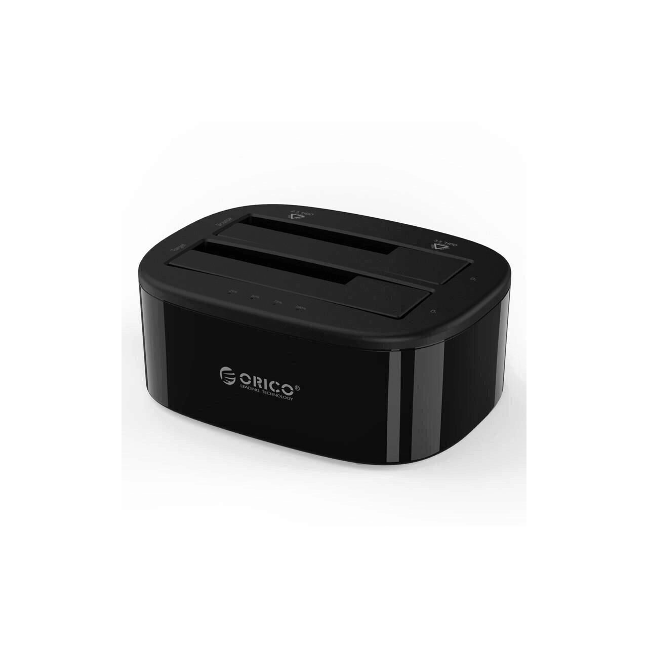 Docking station HDD Orico 6228US3-C USB 3.0 2 bay-uri 2.5/3.5” negru, posibilitatea scrierii si citirii a doua hard disk-uri simultan, posibilitatea clonarii unui hard disk in mod automat (hard disk-urile trebuie sa fie identice; pot existat mici diferente intre hard disk-urile cu acelasi cod de produs dar din loturi diferite si acest lucru va duce la esuarea clonarii; viteza de clonare este de 80MB/s), compatibil cu HDD/SSD 2.5”/3.5” SATA, capacitate maxima 2x8TB, conectivitate USB 3.0, include cablu USB 3.0, plug and play, protectii: over current protection / overvoltage protection / electrical short circuit protection / earth leakage, contruit din plastic ABS ignifug, compatibil Windows/Mac OS/Linux, lungime cablu de date: 1m