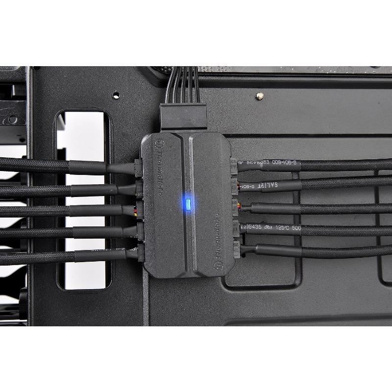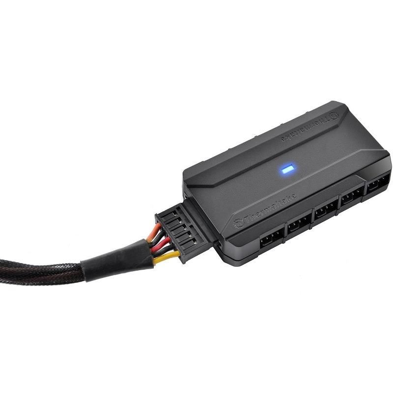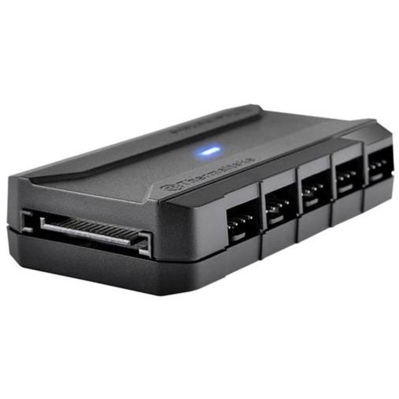Thermaltake Commander FP 10 Port Hub for PWM Fans, suporta pana la 10 ventilatoare (10 port-uri cu conectori 3pin/4pin PWM), iluminare LED albastra, include: 1x cablu semnal PWM, dimensiuni: 81 x 44 x 18mm, greutate: 90g