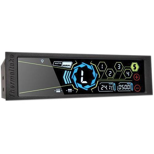 Thermaltake Commander FT, fan controller 5.25” cu touch screen 5.5” si senzor de temperatura, se pot controla 5 ventilatoare (conectori 3-pin sau 4-pin PWM), 1 senzor de temperatura, 5 canale (10W/canal, 50W combinat), alarma de temperatura, posibilitatea salvarii setarilor, dimensiuni: 148 x 88 x 42mm, greutate: 300g