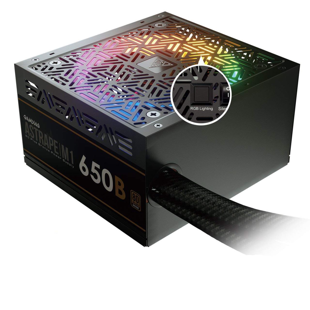 Gamdias Astrape M1 650W PSU iluminare RGB