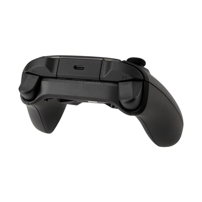 Gamepad ASUS ROG Raikiri negru cu gri iluminare RGB, One-Key Wake-Up, suporta MACRO, doua butoane amplasate pe spate, 2 motoare pentru vibratii, tragace cu pas selectabil, DAC ESS, mufa Jack de 3.5 mm pentru casti și un buton de dezactivare a sunetului, iluminare RGB, compatibil ASUS Aura Sync si ASUS Armoury Crate, conector USB Type-C, compatibilitate: Xbox / PC, dimensiuni: 103x64x155mm, greutate: 300g