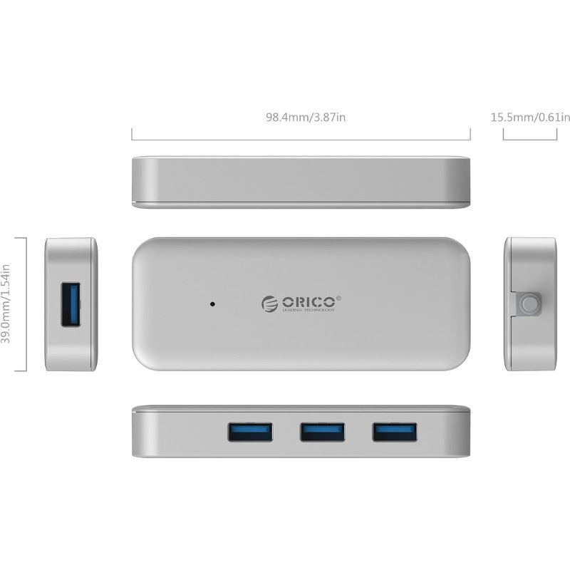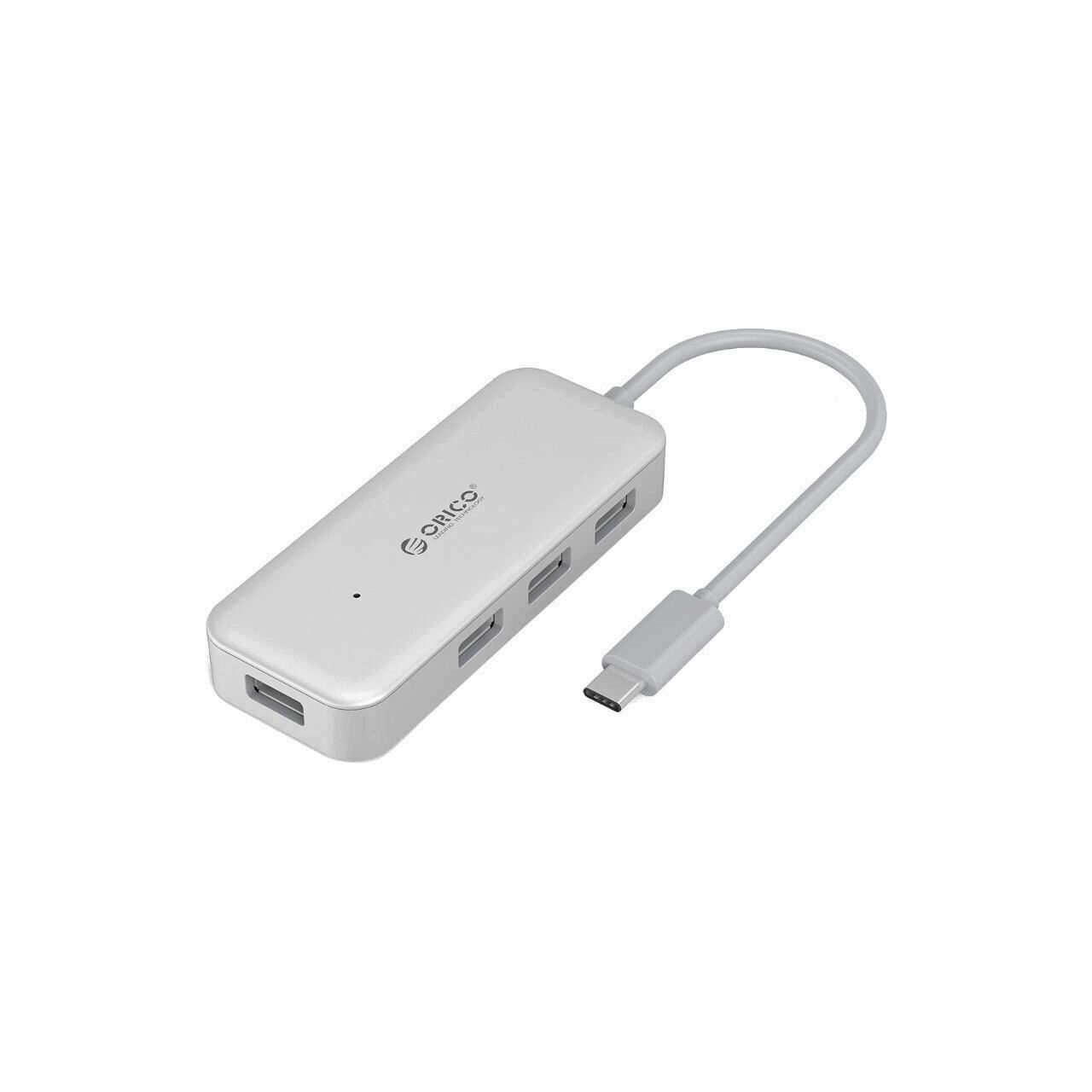 Orico TC4U-U3 USB 3.0 Hub Silver, output: 4x USB 3.0 Type-A, input 1x USB 3.0 Type-C, plug and play, posibilitate hot swap, protectii: over current / over-voltage / short circuit protection, lungime cablu: 15cm, dimensiuni: 98.5 x 39 x 15.5mm, greutate: 80g
