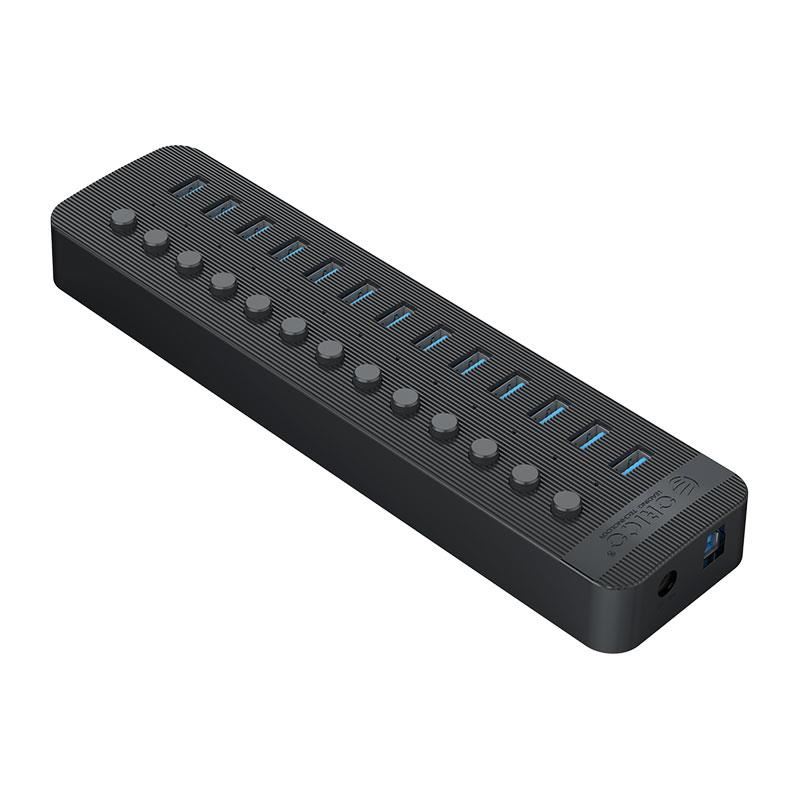 HUB USB Orico CT2U3-13AB USB 3.0 negru, 13 port-uri USB 3.0 cu buton ON/OFF, plug and play, posibilitate hot swap, include alimentator 12V / 5A 60W, lungime cablu: 1m, dimensiuni: 235 x 58 x 26mm