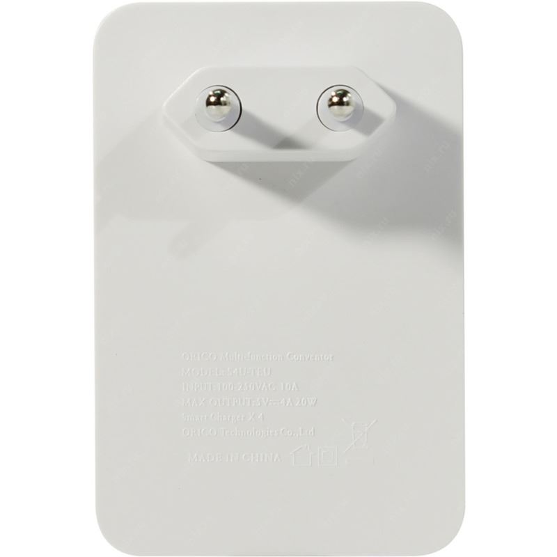 Orico S4U 20W USB Wall Charger White, incarcator cu 4 port-uri USB pentru diverse dispozitive (tablete, telefoane mobile, etc.) si o priza AC, foloseste circuit inteligent de detectare a curentului corespunzator aparatului conectat (Intelligent Identification IC), intrare: 100-240V 50/60Hz, iesiri: 5V2.4A x 4, putere maxima: 5V4A 20W, protectii: overvoltage/over current/short circuit protection, dimensiuni: 86 x 58 x 41.5mm