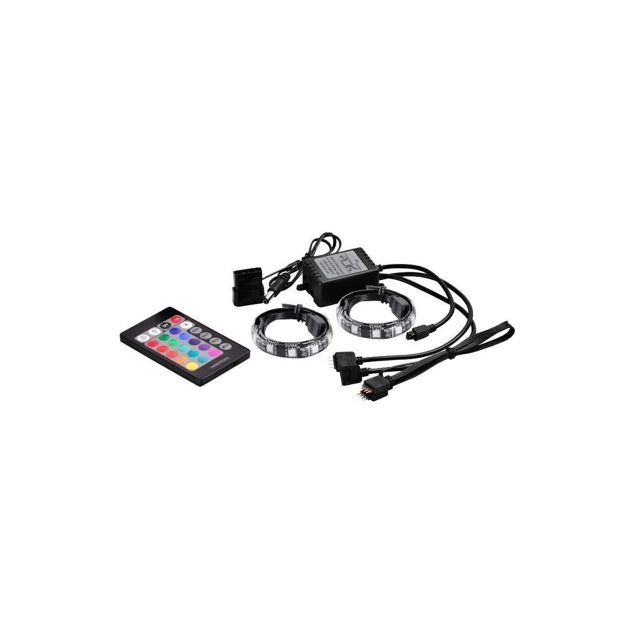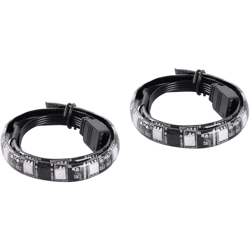 Deepcool RGB 350 LED Lighting Kit, fixare magnetica, lungime (cu cablu 200mm): 500mm, lungime cablu extensie: 500mm, dimensiuni benzi LED: 300x10x3mm, numar LED-uri: 18buc/banda, include 2 benzi LED ce pot fi taiate la lungimea dorita, cabluri incluse: 1x alimentare, 1x extensie, include telecomanda fara fir pentru controlul culorii LED-urilor si a efectelor de iluminare, compatibil cu Asus AURA