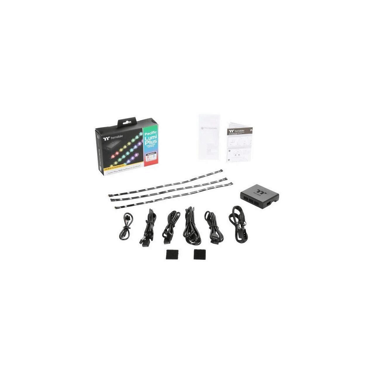 Thermaltake Pacific Lumi Plus LED 3 Pack, fixare magnetica, lungime (cu cablu 900mm): 1200mm, dimensiuni benzi LED: 300x10x3mm, numar LED-uri: 12buc/banda, include 3 benzi LED, cabluri incluse: 1x alimentare, 1x extensie, 3x copncetare LED, 1x sincronizare alt modul, greutate: 200g