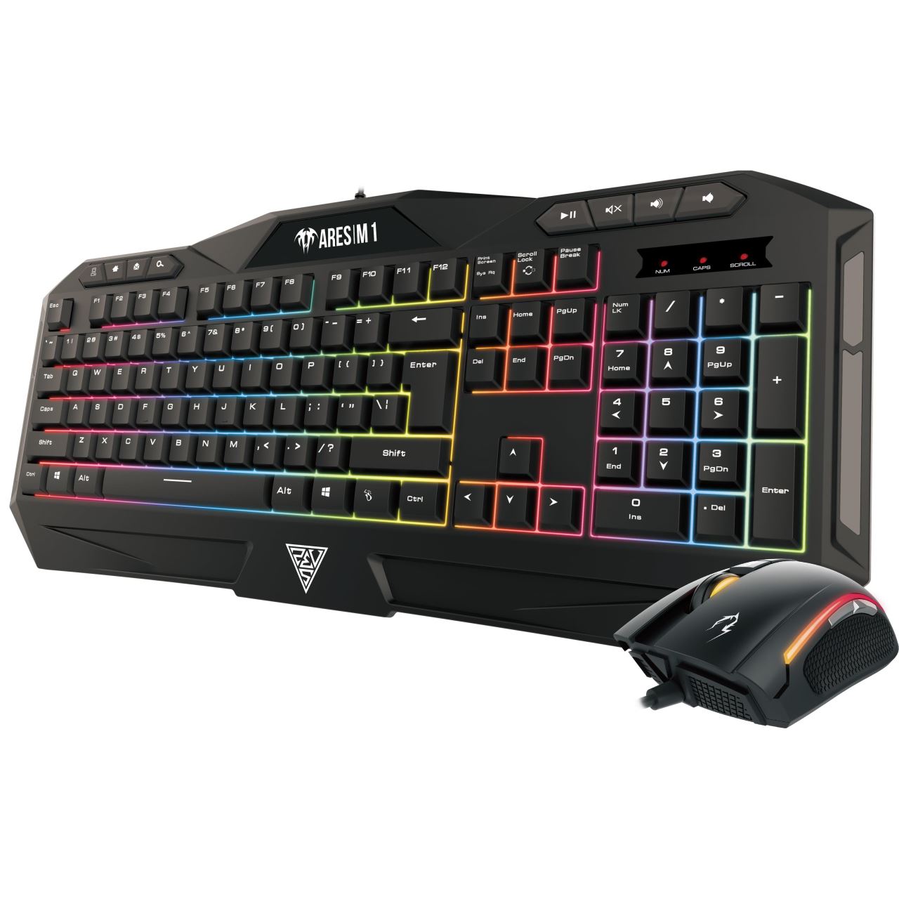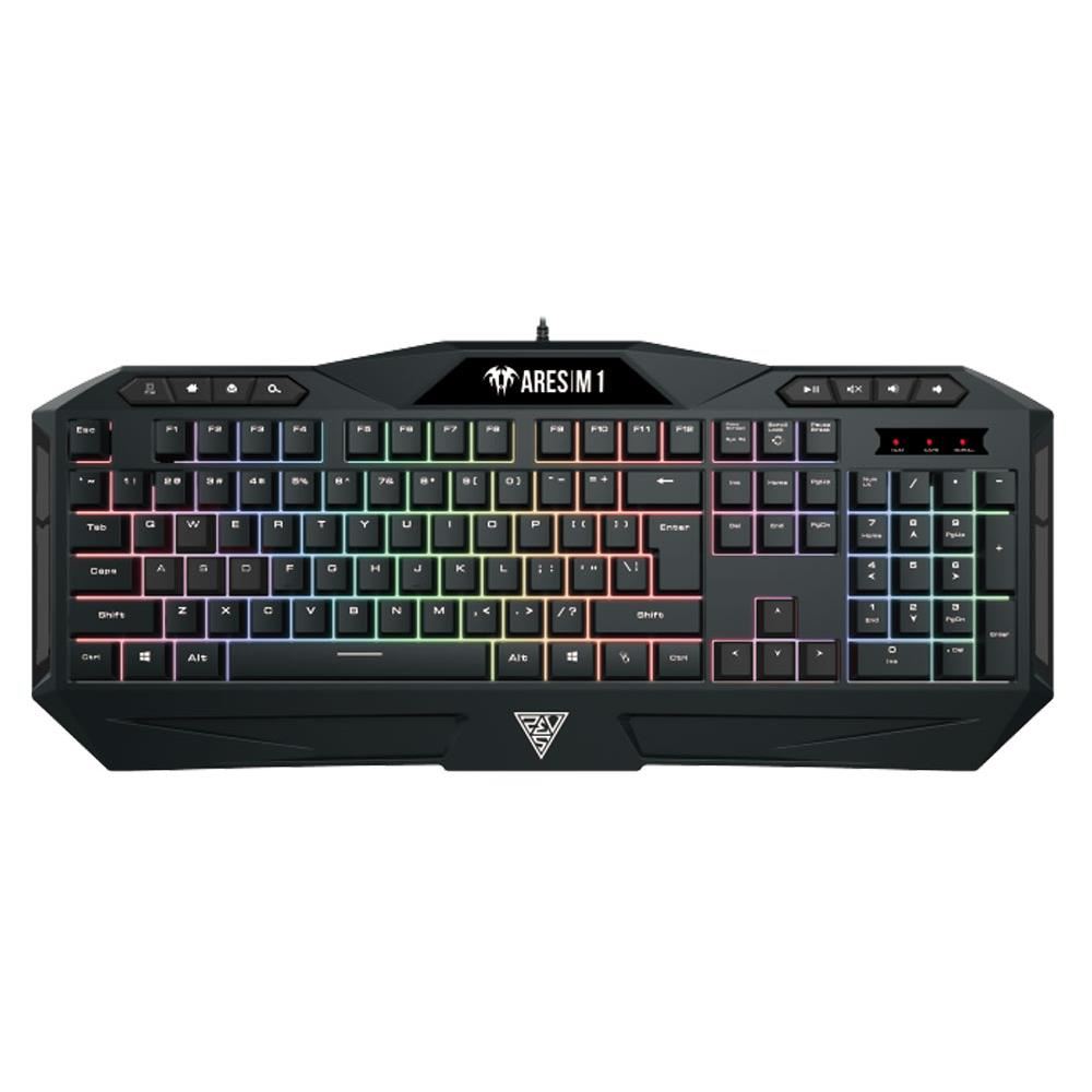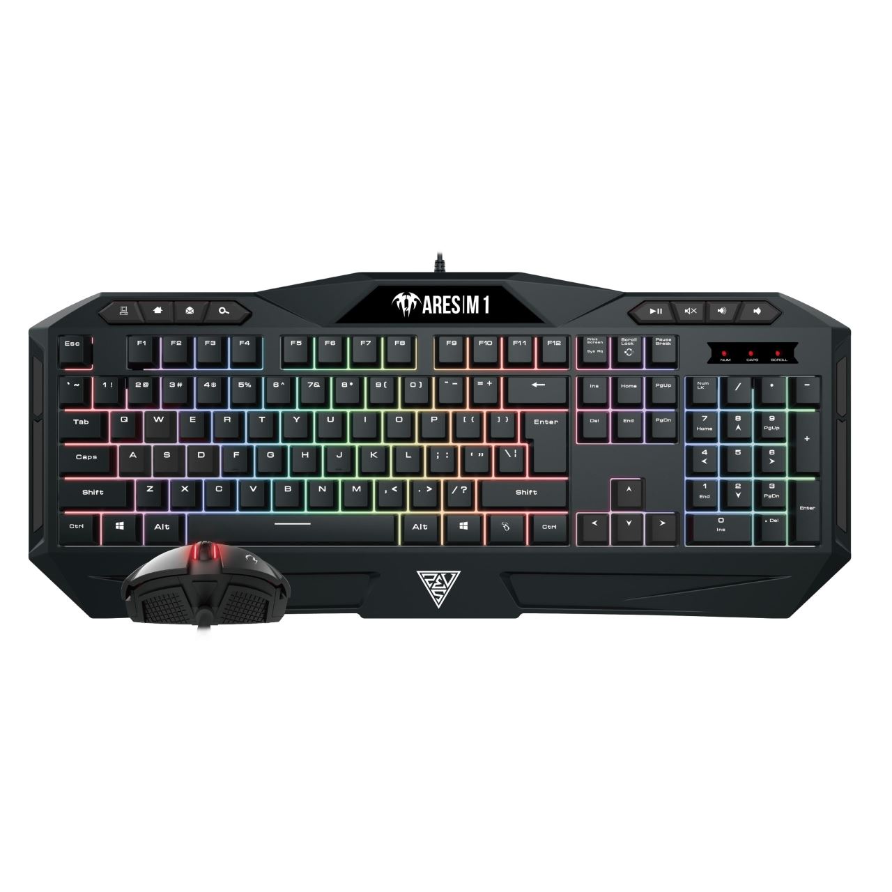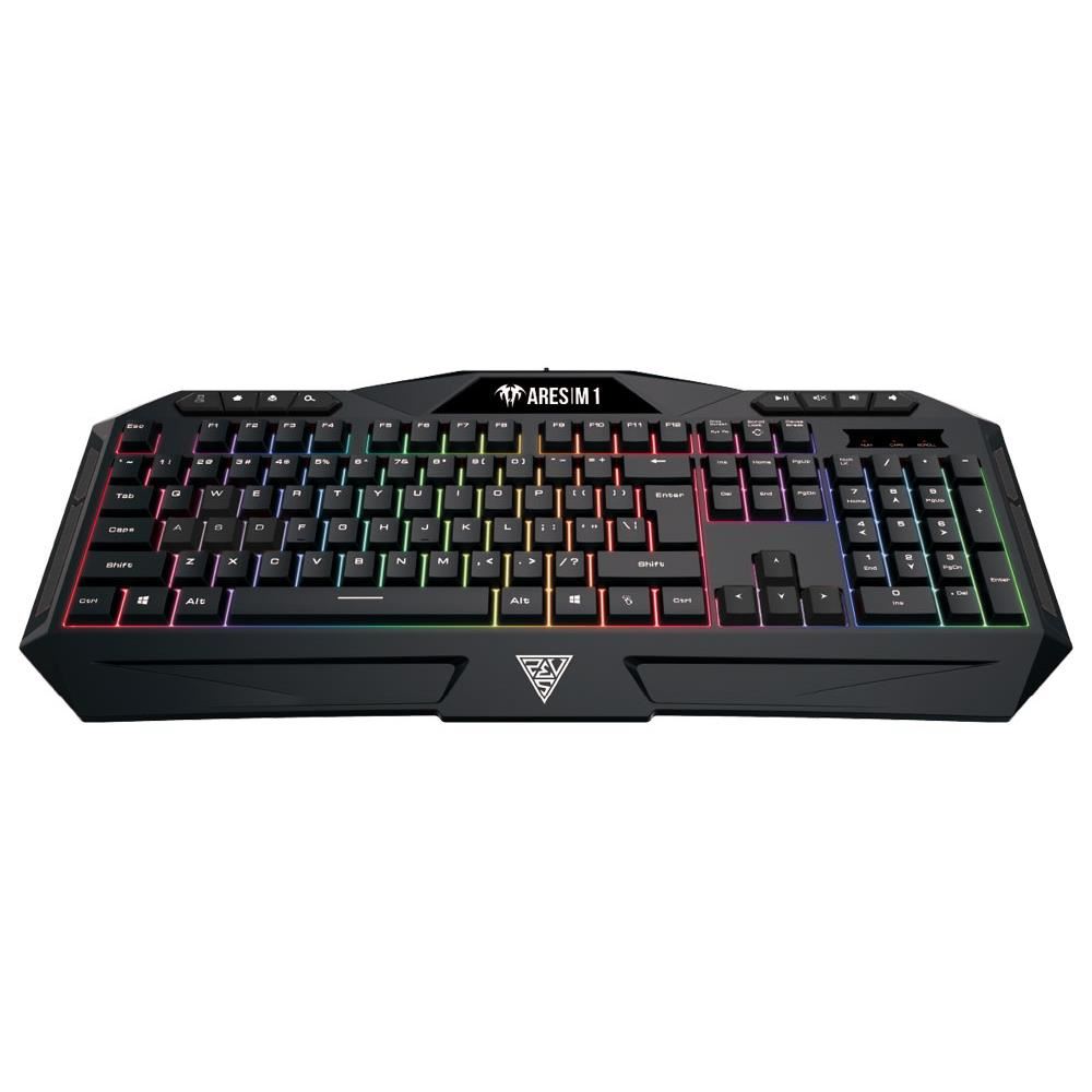 Kit gaming Gamdias Ares M1 2 in 1 negru iluminare RGB, specificatii tastatura: iluminare LED RGB pe 6 zone si 4 nivele de intensitate luminoasa, taste anti-ghosting, 26 de taste fara conflict (26-key rollover), 8 taste multimedia, polling rate: 1000Hz, mod schimbare WASD/Taste directionale, personalizare si configurare cu ajutorul programului GAMDIAS HERA, memorie on-board: 72KB, lungime cablu imbracat in textil: 1.8m, dimensiuni: 470x220x45mm, greutate: 710g, specificatii mouse: mouse optic cu fir, iluminare LED RGB, 3200 DPI (1200/1600/2000/3200 DPI), durata de viata micro switch-uri: 3 milioane de click-uri, numar butoane: 6, , benzi laterale din cauciuc pentru o priza mai buna, design ambidextru, lungime cablu: 1.5m, dimensiuni: 118x67x38.5mm, greutate: 105g