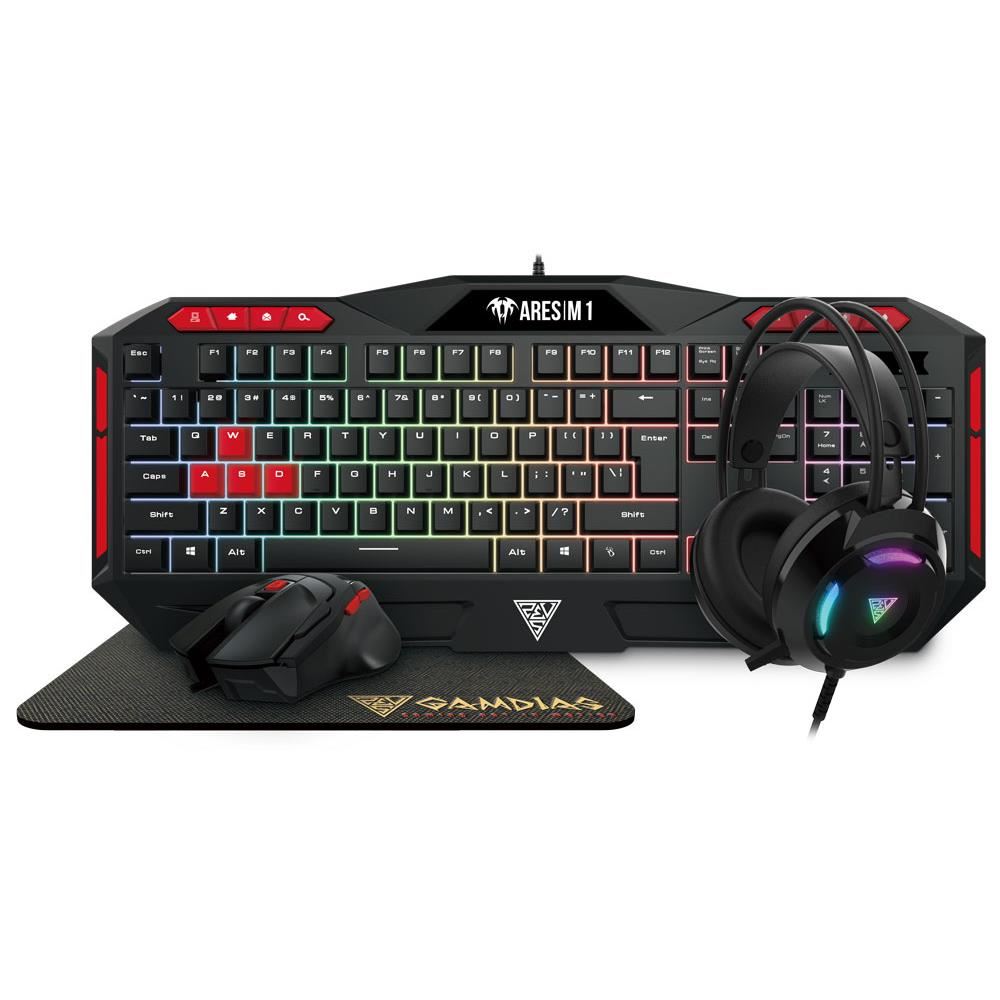 Kit gaming Gamdias Poseidon M2 iluminare RGB negru, specificatii tastatura ARES M1 RGB: iluminare LED RGB pe 6 zone si 4 nivele de intensitate luminoasa, taste anti-ghosting, 19 de taste fara conflict (19-key rollover), 8 taste multimedia, polling rate: 1000Hz, mod schimbare WASD/Taste directionale, lungime cablu: 1.8m, dimensiuni: 470x220x45mm, greutate: 710g, specificatii mouse: 1200/1800/ 2400/ 3600 DPI (Default 1200), senzor optic, iluminare multicolora, conector: USB, lungime cablu: 1.5m, dimensiuni: 115x75x40mm, greutate: 126g, specificatii casti: design ergonomic, iluminare LED multicolora, design ergonomic, microfon omnidirectional flexibil (dimensiuni: Φ6x2.7mm, sensibilitate: -58dB±3dB), difuzoare: 40mm (impedanta: 32Ω, sensibilitate: 109±3dB), conectori: USB / 2x jack 3.5mm TRS, adaptor 2xjack 3.5mm TRS, lungime cablu: 1.8m, greutate: 281g, specificatii mousepad: baza cauciucata antiderapanta, dimensiuni: 240x180x3mm