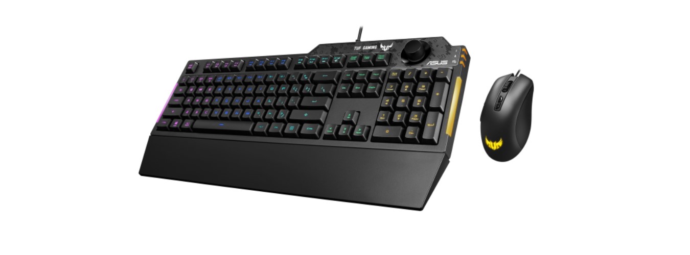 Kit gaming ASUS TUF Gaming Combo (K1&M3), RGB, tastatură de gaming cu rezistență la stropire, buton dedicat pentru volum și mouse optic de gaming cu senzor de 7000 dpi, 7 butoane programabile, iluminare Aura Sync
