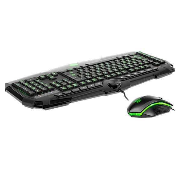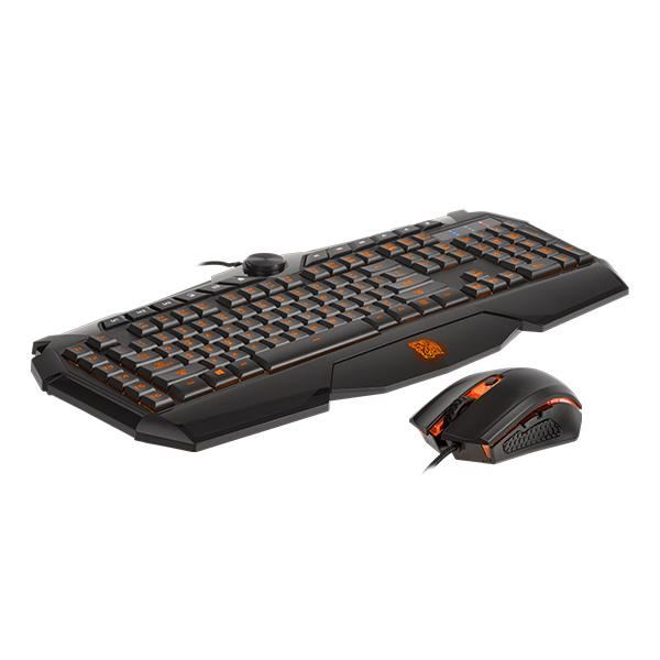Tt eSPORTS CHALLENGER Prime RGB Combo, iluminare LED RGB a tastelor (selectarea culorii se face prin intermediul software-ului), cu posibilitatea controlului intensitatii luminoase (6 nivele de intensitate) si cu 3 efecte de iluminare, anti-ghosting/n-key rollover pentru combinatii de 24 taste (permite inregistrarea simultana a apasarii oricarei combinatii de taste din urmatoarele: TAB, Q, W, E, A, S, D, Z, X, C, V, B, F, T, cele 4 taste directionale), software pentru configurare (6 taste macro dedicate, 18 macro-uri programabile, posibilitatea setarii a 3 profile, posibilitatea salvarii profilelor in memoria tastaturii, profilele por fi schimbate direct de pe tastatura), functie speciala ce permite inversarea rolului tastelor W,A,S,D si tastelor directionale, polling rate tastatura: 1000Hz, posibilitatea ajustarii timpului de raspuns a apasarii tastelor, memorie on-board tastatura: 16 KB, 6 taste multimedia si 4 taste pentru internet, lungime cablu tastatura: 1.5m, dimensiuni tastatura: 505 x 239 x 24mm, greutate tastatura: 869g, rezolutie mouse: 400/800/1600/3200 DPI, iluminare LED RGB a mouse-lui cu diverse efecte de iluminare, numar butoane mouse: 6, picioruse de teflon, switch-uri Omron, lungime cably mouse: 1.8m, dimensiuni mouse: 123 x 71 x 41.6mm, USB.
