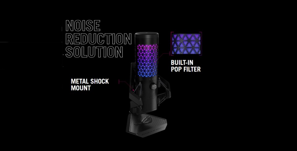 ROG Carnyx este un microfon USB cardioid de calitate profesională care dispune de o capsulă cu condensator de 25 mm și o rată de eșantionare de 192 kHz / 24 biți pentru a oferi un sunet natural și bogat. Carnyx oferă înregistrări curate și neîntrerupte datorită unui filtru de trecere înalt care reduce zgomotul de joasă frecvență, unui filtru pop încorporat pentru a preveni consoanele oclusive vocale, împreună cu un suport de șoc metalic pentru a minimiza vibrațiile externe.