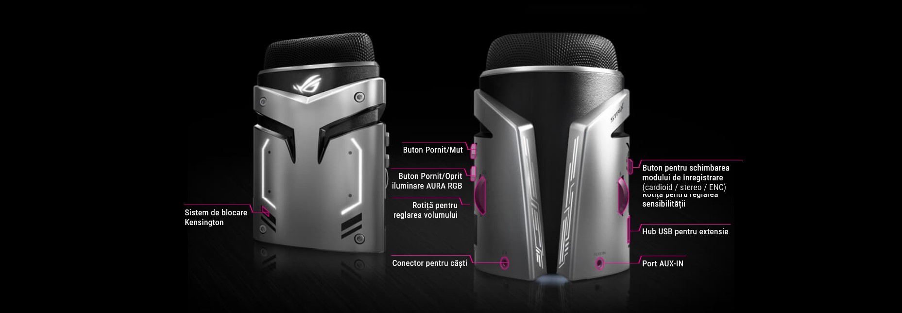 Butoanele si elementele de control ale microfonului ROG Strix Magnus sunt pozitionate intuitiv, pentru a fi usor accesibile in timpul sesiunilor intense de gaming sau in timpul transmisiilor live. Elementele de control pentru volum si mute pot fi accesate fara sa fie nevoie ca jucatorul sa ia mana de pe mouse. Celelalte elemente de control ale microfonului – precum sensibilitatea si modul de inregistrare – sunt grupate si pozitionate facil pentru ajustari audio precise, astfel ca jucatorii vor putea crea inregistrari audio de cea mai buna calitate, chiar si din mijlocul actiunii. Microfonul este dotat si cu un port USB 2.0, care permite conectarea altor dispozitive.