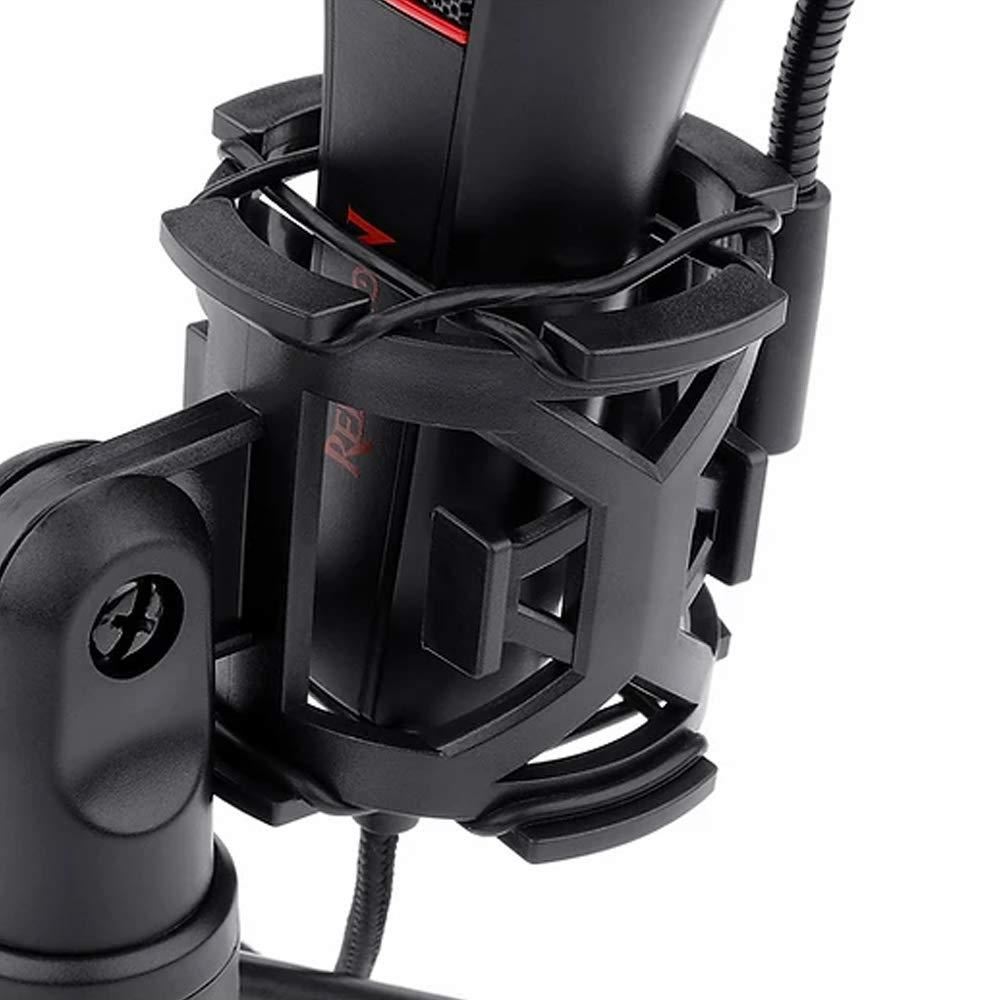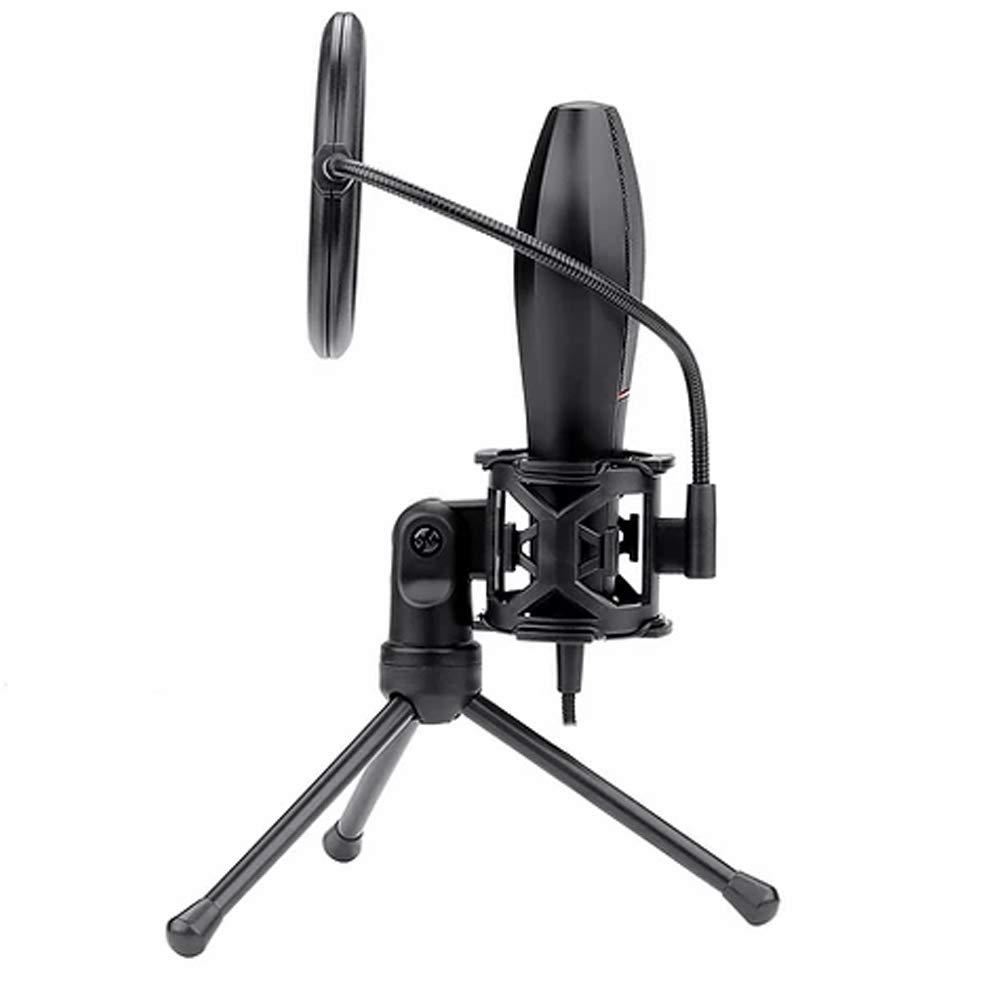 Microfon Redragon Quasar negru cu stand, microfon omni-condenser Omni-9765 (sensibilitate: -38±3dB, raspuns in frecventa: -50Hz-16kHz, impedanta: ≤2.2KΩ), include stativ si filtru, lungime cablu: 1.5m, conectori: 1x USB, dimensiuni: 150x55x33mm, greutate: 250g