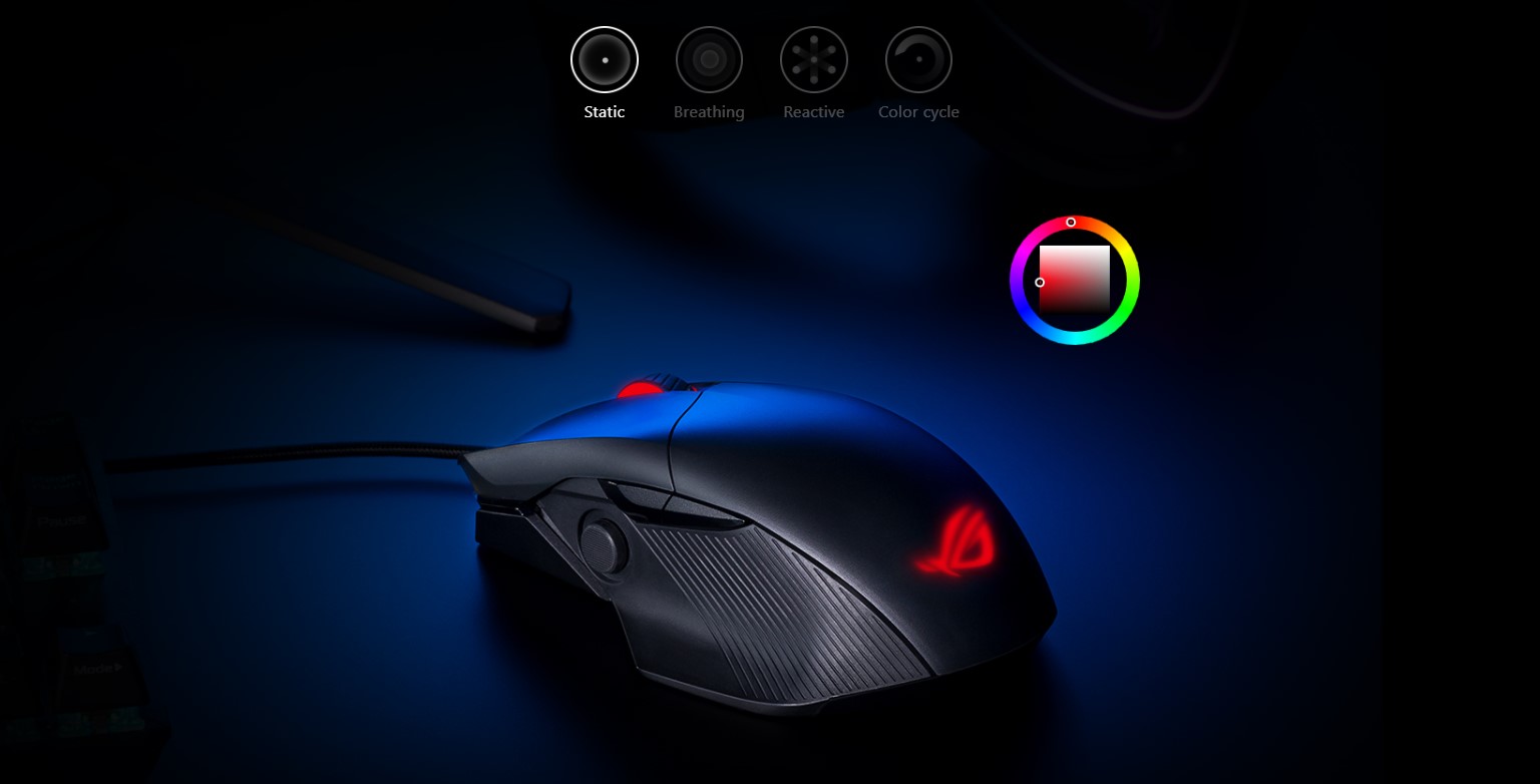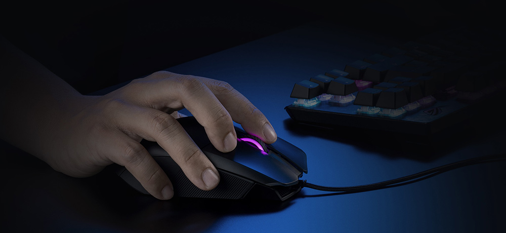 Du stilul la următorul nivel cu iluminarea RGB ASUS Aura Sync. Personalizează-ți complet mouse-ul folosind un spectru infinit de culori și o gamă de efecte dinamice de iluminare. Toate iluminările pot fi sincronizate cu un portofoliu în continuă creștere de hardware compatibil cu Aura Sync pentru a-ți crea un spațiu pentru joacă cu adevărat personal.