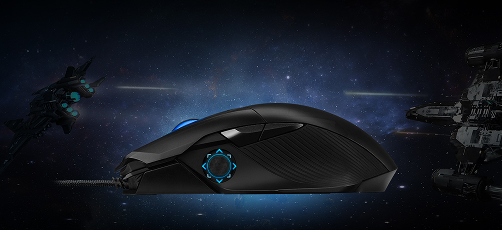 ROG Chakram Core este un mouse cu fir de 16.000 dpi, la 1.000 Hz cu un joystick programabil și detașabil care îți oferă un control superior. Fiind dotat cu soclurile exclusive push-fit pentru comutatoare, greutate ajustabilă și funcția unică DPI On-The-Scroll pentru ajustarea senzitivității, Chakram Core îți pune în mână tot ce ai nevoie.