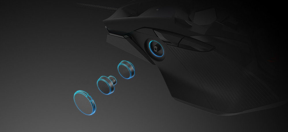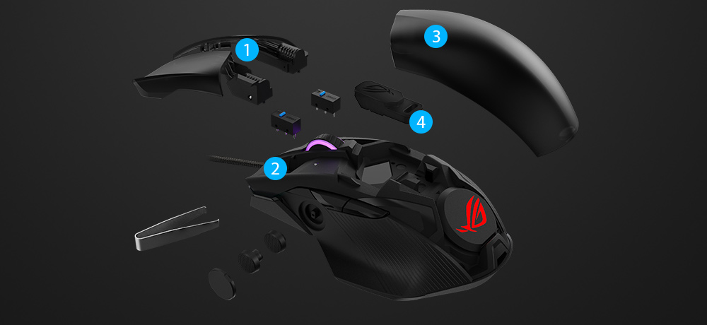 ROG Chakram Core are un design modular fără șuruburi, cu capace și butoane magnetice, precum și cu socluri exclusive push-fit pentru comutatoare și greutate ajustabilă, oferindu-ți o mulțime de opțiuni de personalizare, pentru a-l face pe Chakram Core cu adevărat al tău.