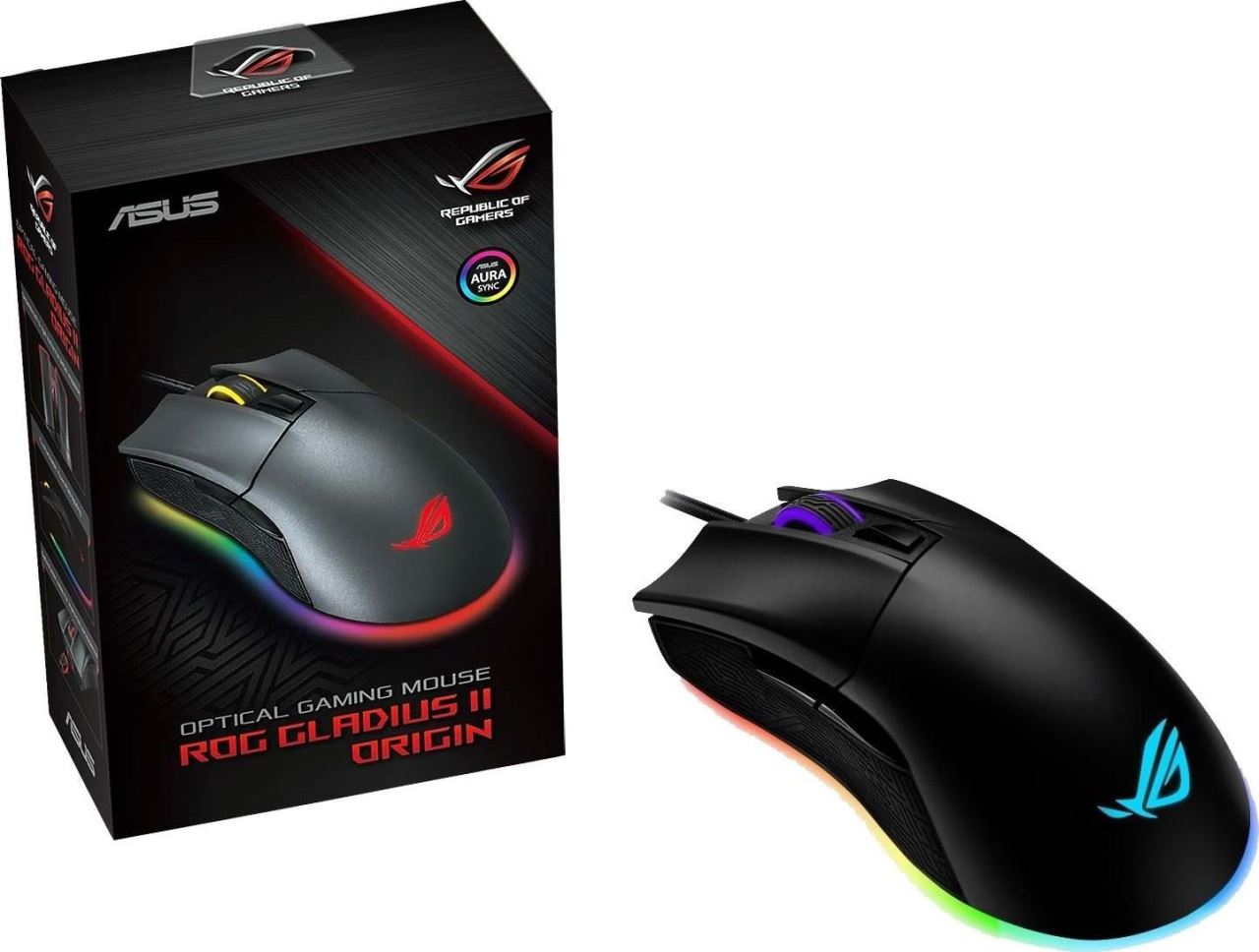 Mouse Gaming ASUS ROG Gladius II Origin, RGB, conectivitate cu fir, senzor 12.000 dpi, iluminare Aura Sync